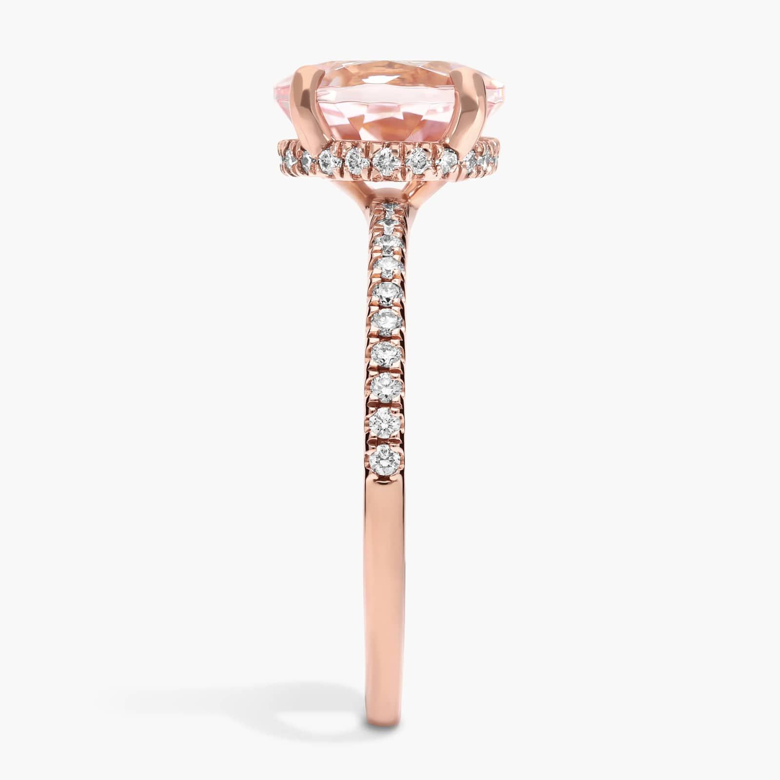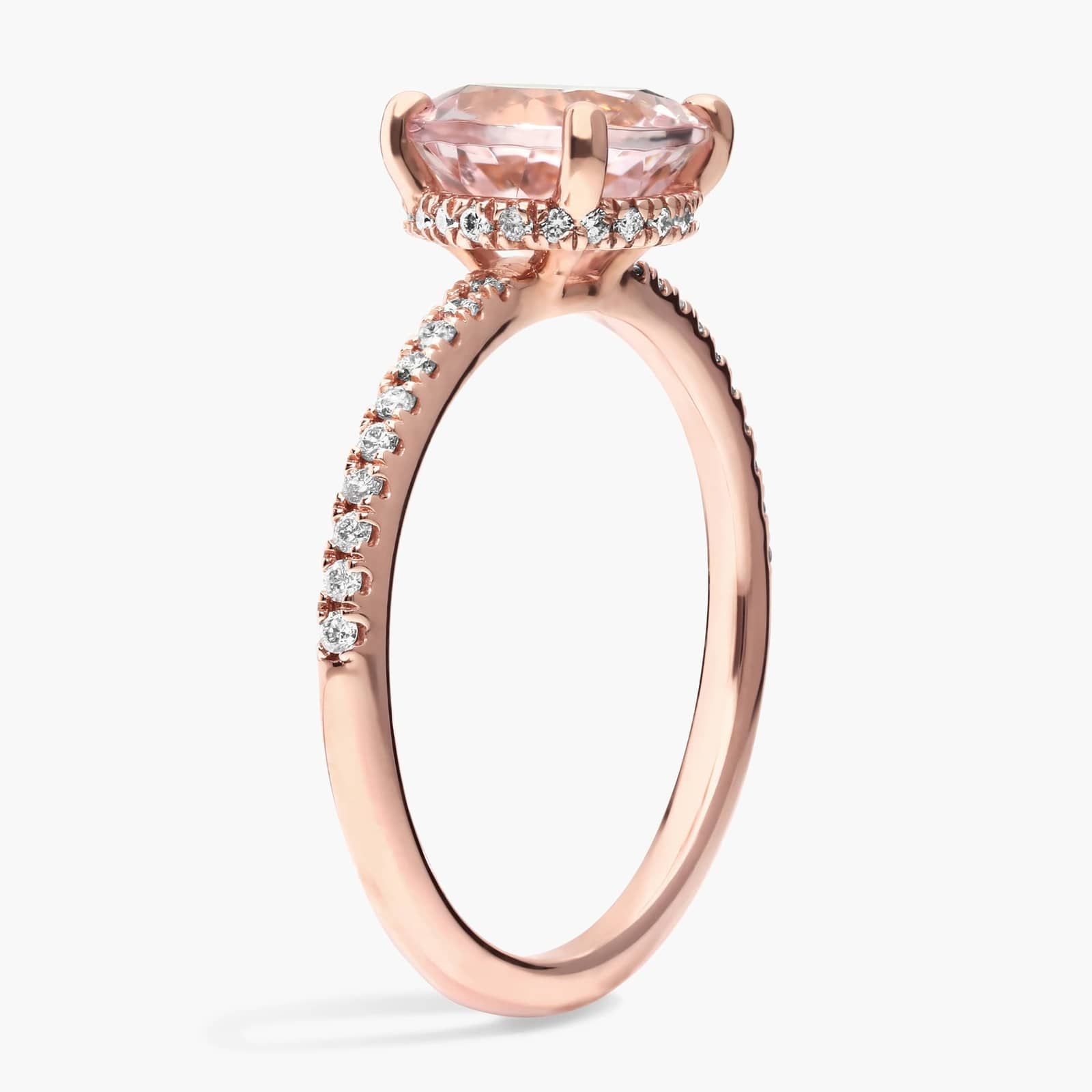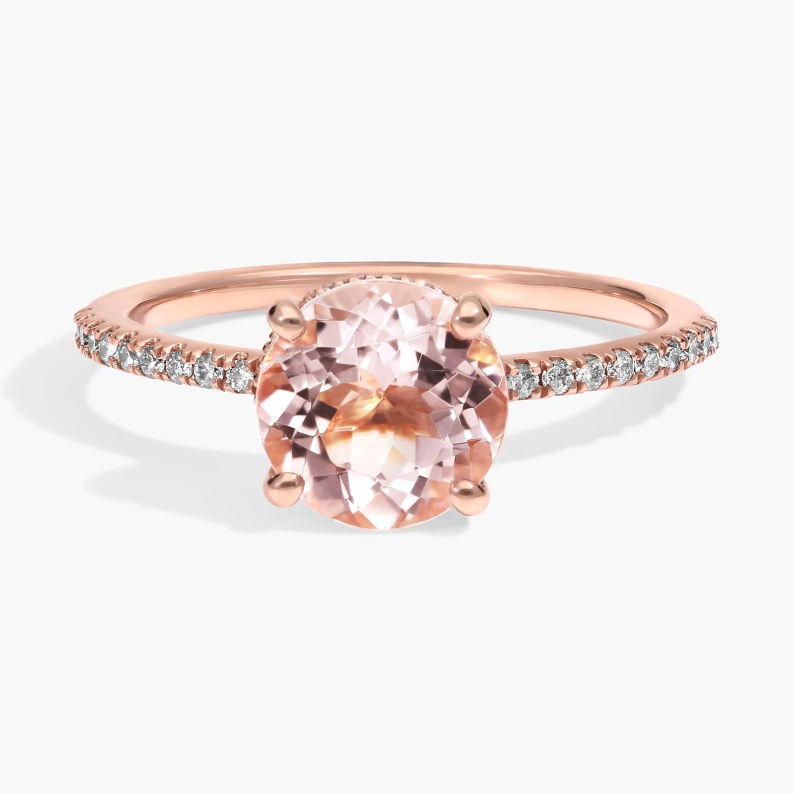 Petite Micropavé Hidden Halo Engagement Ring with Round Morganite in 14k Rose Gold (8mm)