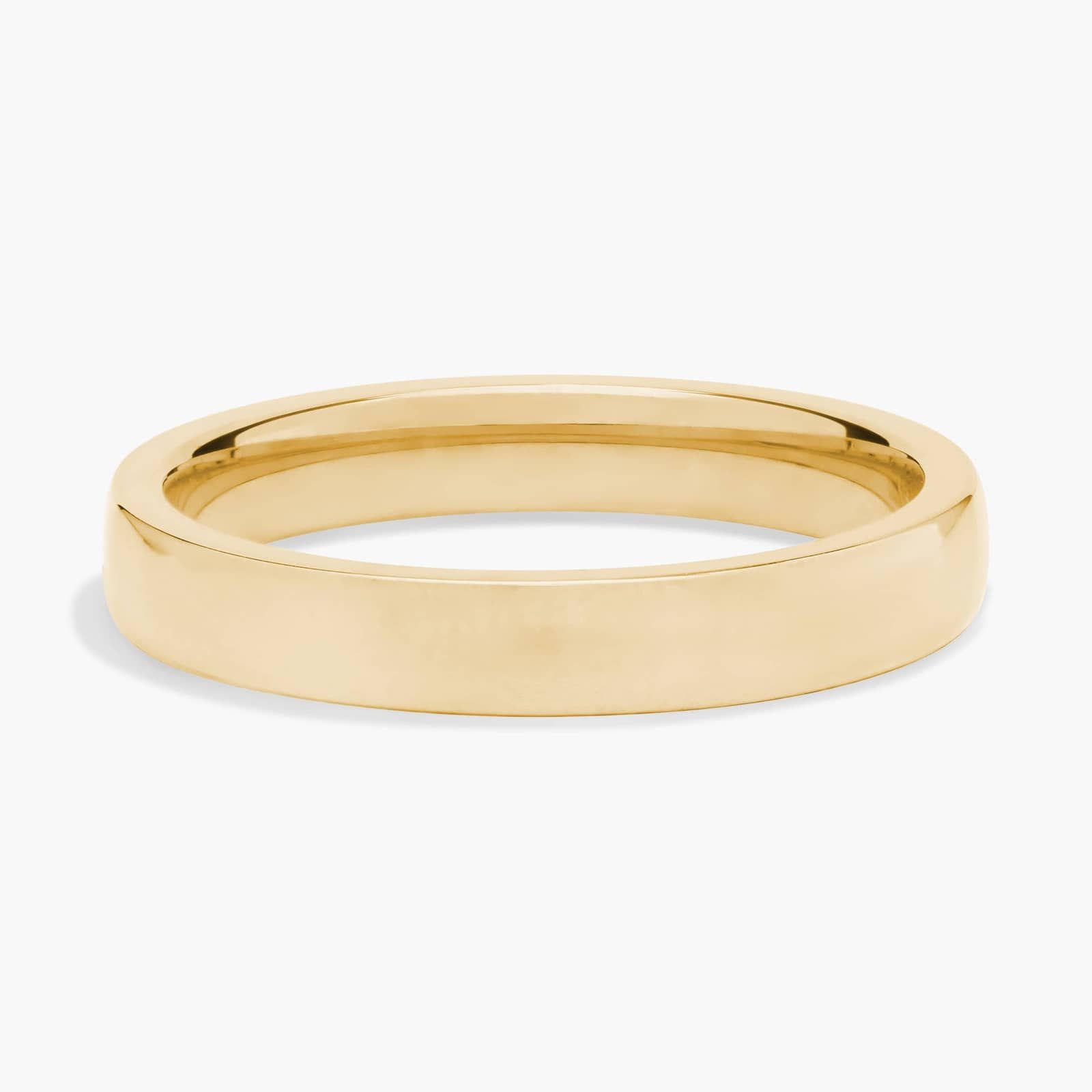 These low dome comfort fit bands are similar in width and profile but feature different gold colors for a balanced, mismatched look. The result feels coordinated without looking identical. As you compare metals, resources on men’s gold wedding ring metals can help you see how each option wears over time.