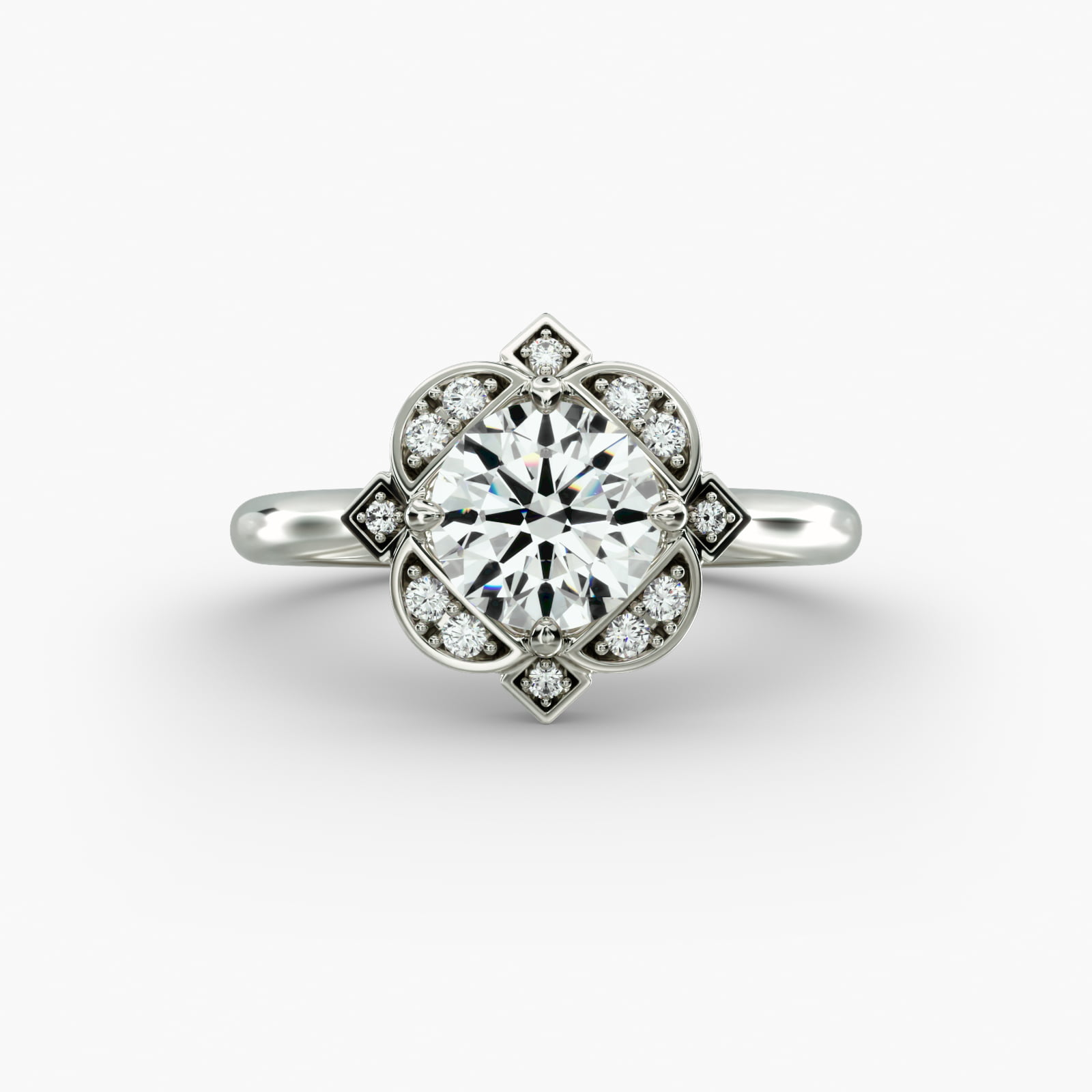 Art Deco Inspired Floral Halo Vintage-Style Engagement Ring In 14K White Gold