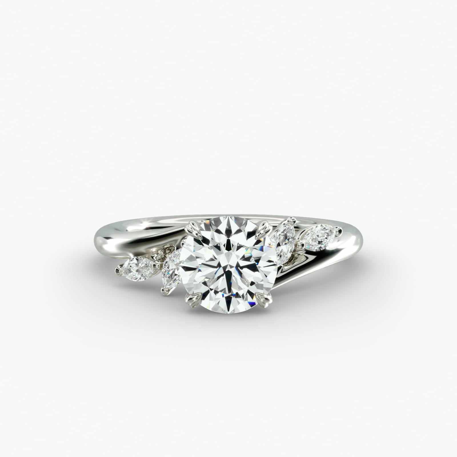 Bypass Marquise Array Side Stone Diamond Engagement Ring In 14K White Gold