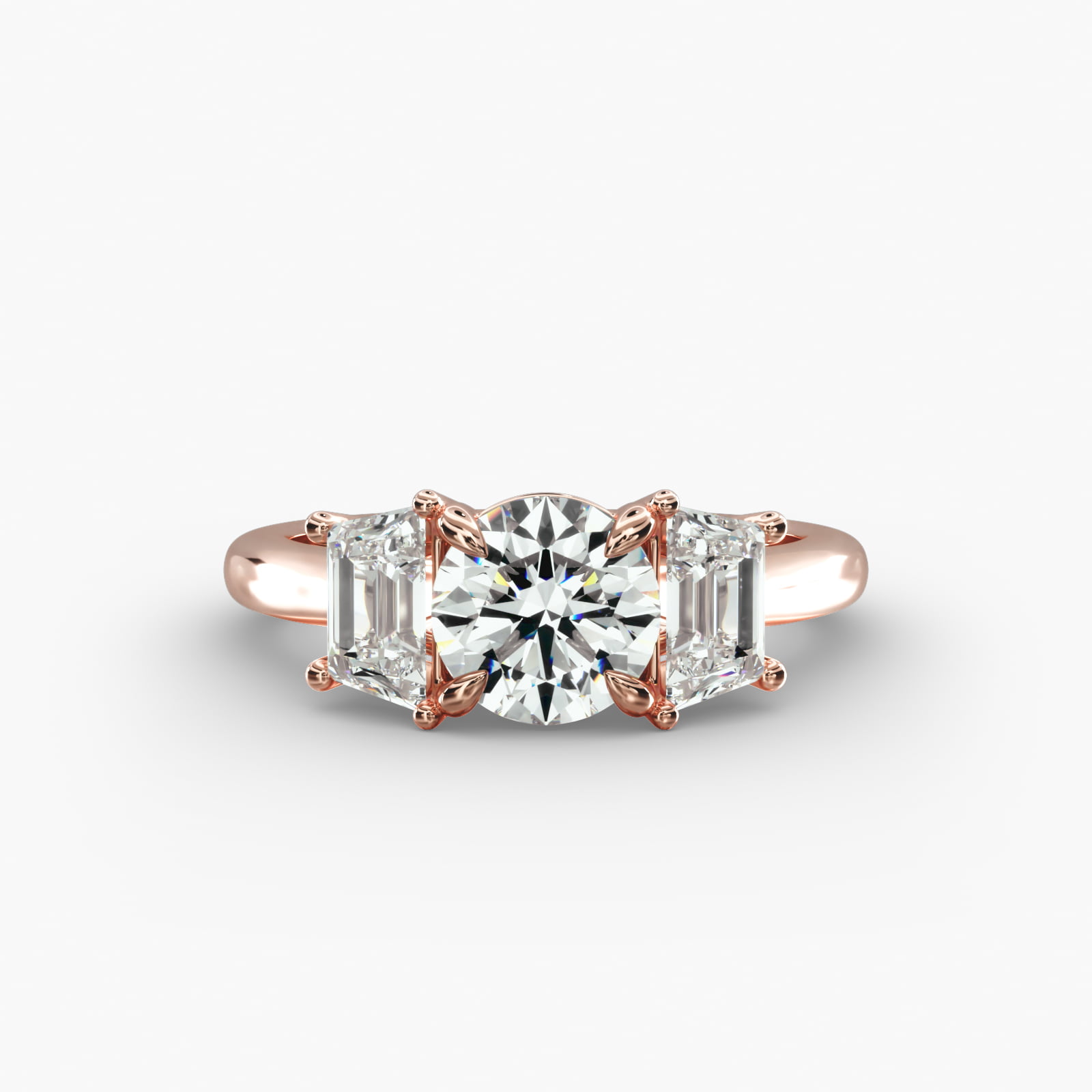 Three-Stone Trapezoid Sidestone Lab-Grown Diamond Engagement Ring in 14k Rose Gold (1 ct. tw.)