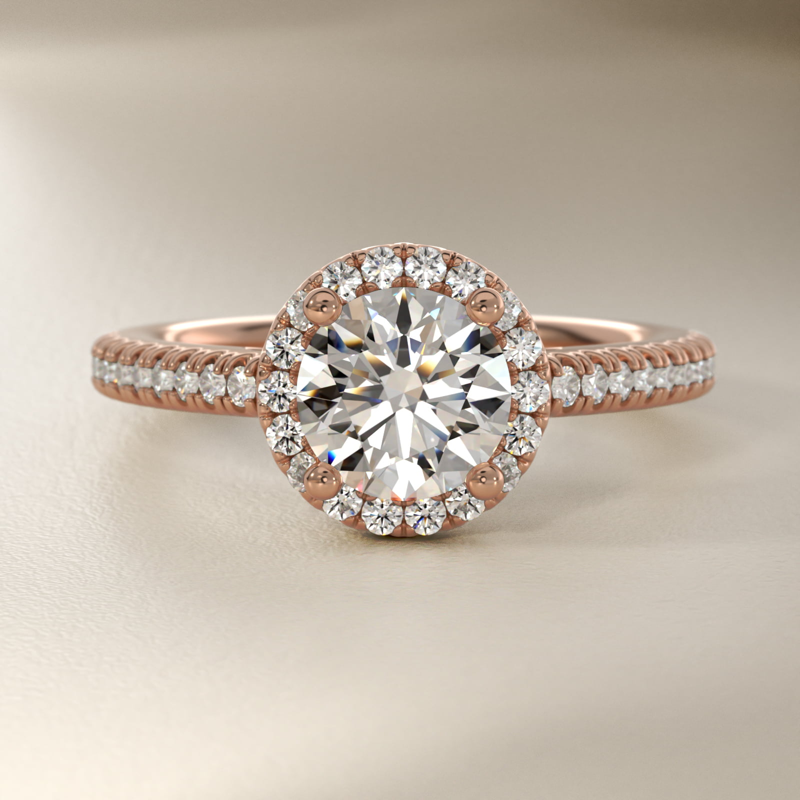 Classic Halo Diamond Engagement Ring in 14k Rose Gold