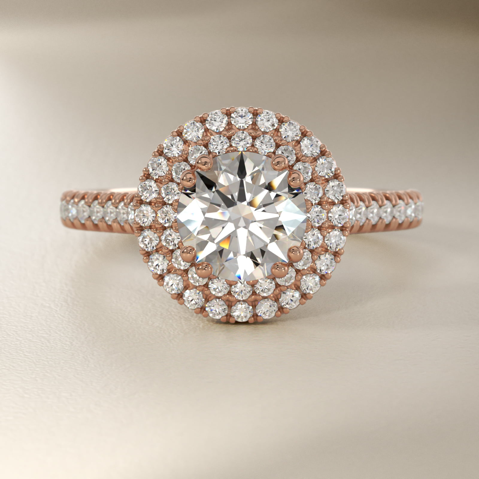 Micropavé Double Halo Diamond Engagement Ring in 14k Rose Gold (1/3 ct. tw.)