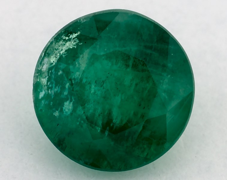 This 0.70 Round Green Emerald gemstone is sold exclusively on Blue Nile.