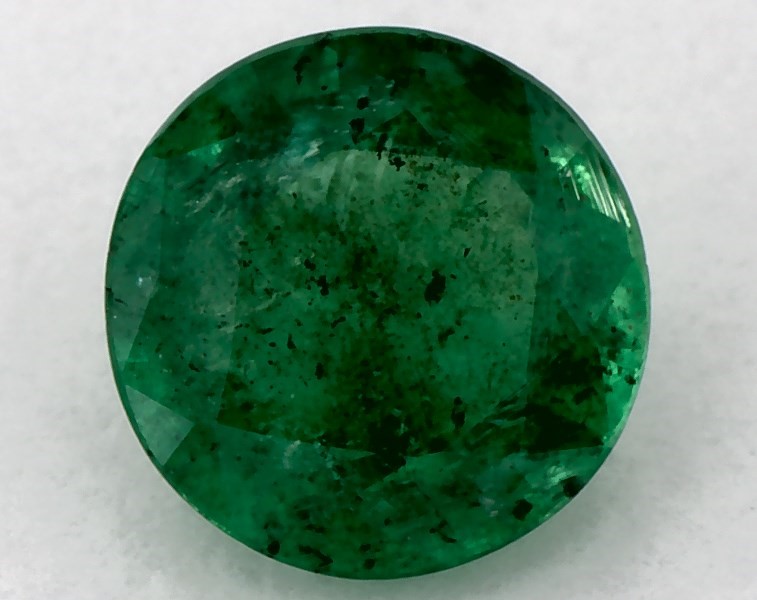 This 0.73 Round Green Emerald gemstone is sold exclusively on Blue Nile.