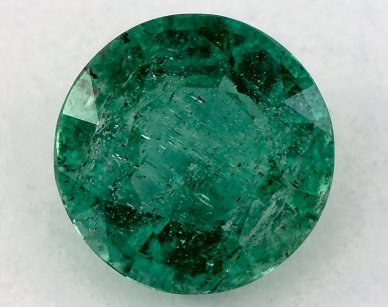 This 0.87 Round Green Emerald gemstone is sold exclusively on Blue Nile.
