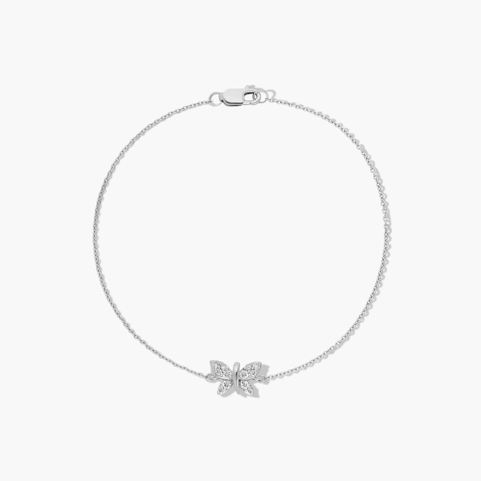 14K White Gold Dainty Diamonds Pavé Butterfly Bracelet