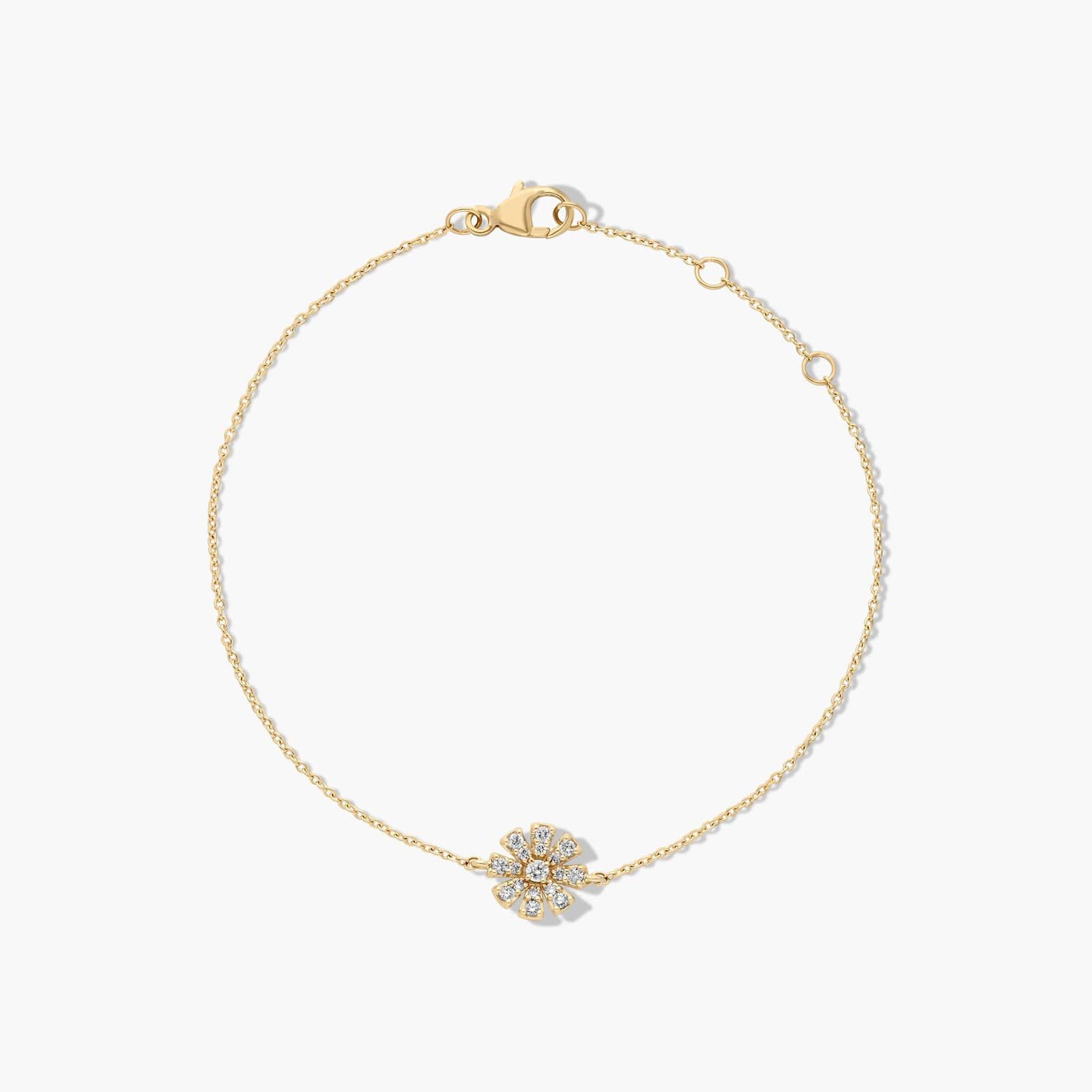 14K Yellow Gold Dainty Diamonds Pavé Flower Bracelet