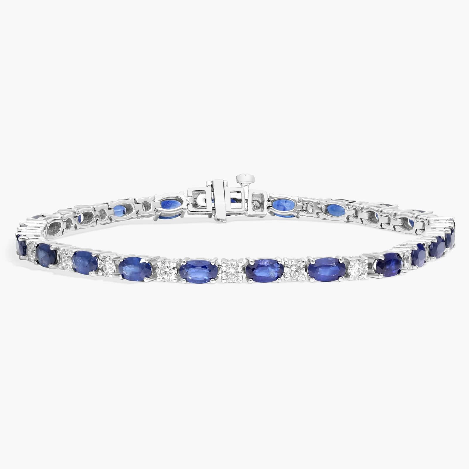 Diamond and Oval Shaped Blue Sapphire Bracelet in 14K White Gold