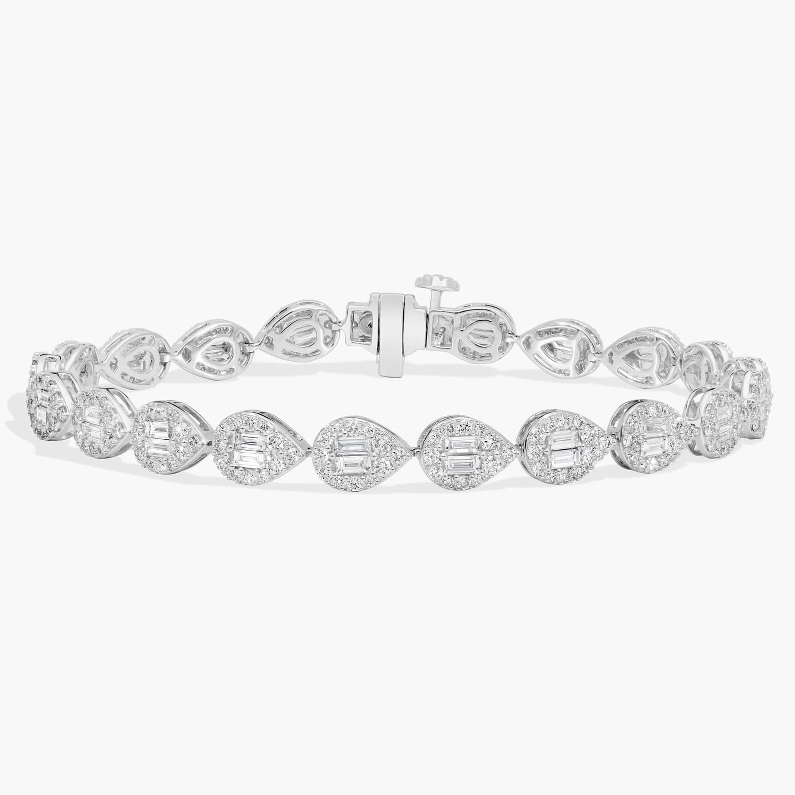 Diamond Bracelet with 4 CTW Baguette and Round Cut Lab-Grown Diamonds in 14K White Gold
