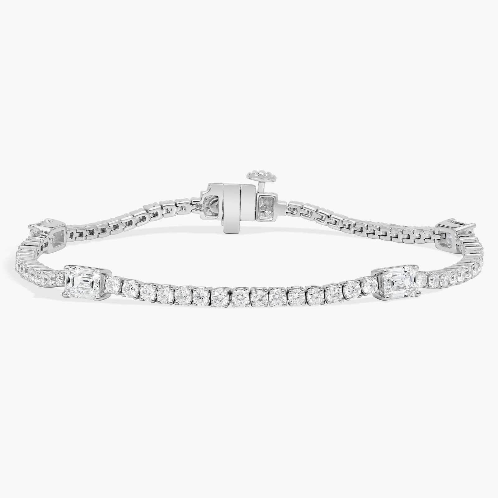 Diamond Bracelet with 4.5 CTW Emerald and Round Cut Lab-Grown Diamonds in 14K White Gold