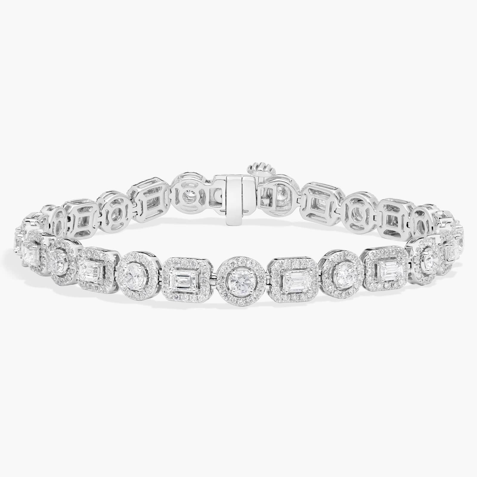 Diamond Halo Bracelet with 5 CTW Emerald and Round Cut Lab-Grown Diamonds in 14K White Gold