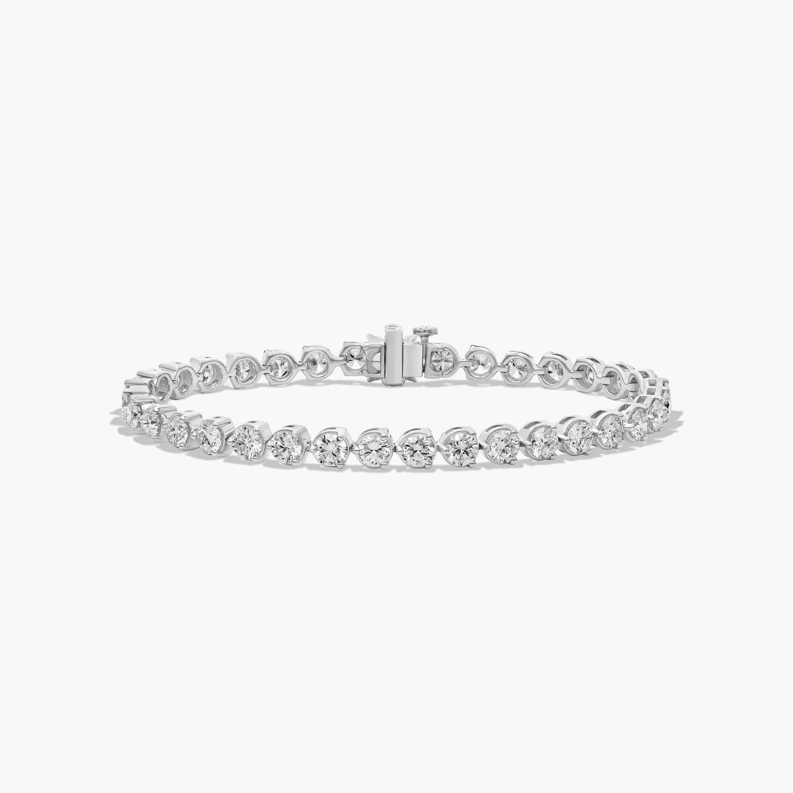 This classic tennis bracelet features a single row of scintillating brilliant cut Lab-Grown diamonds set in finely crafted three prong baskets and closed by an elegant flower clasp.