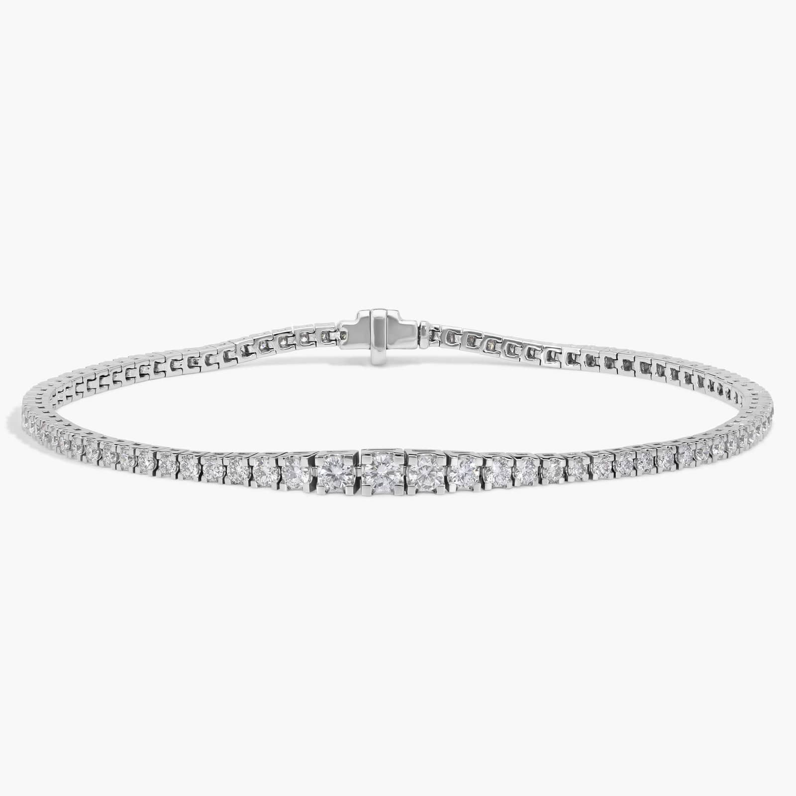 Graduating Diamond Bracelet with 2 CTW Round Cut Lab-Grown Diamonds in 14K White Gold