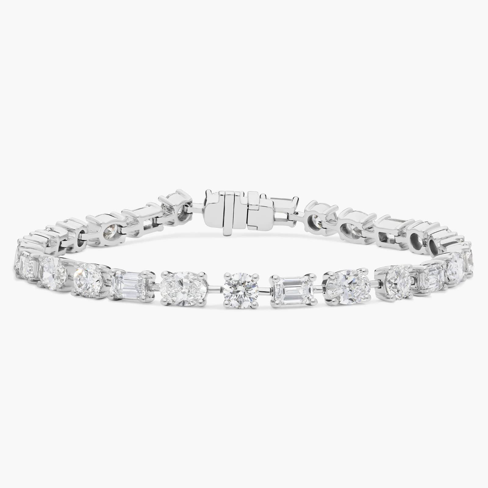 Multi-Shape Diamond Line Bracelet with 9 CTW Round, Oval, And Emerald Cut Lab-Grown Diamonds in 14K White Gold