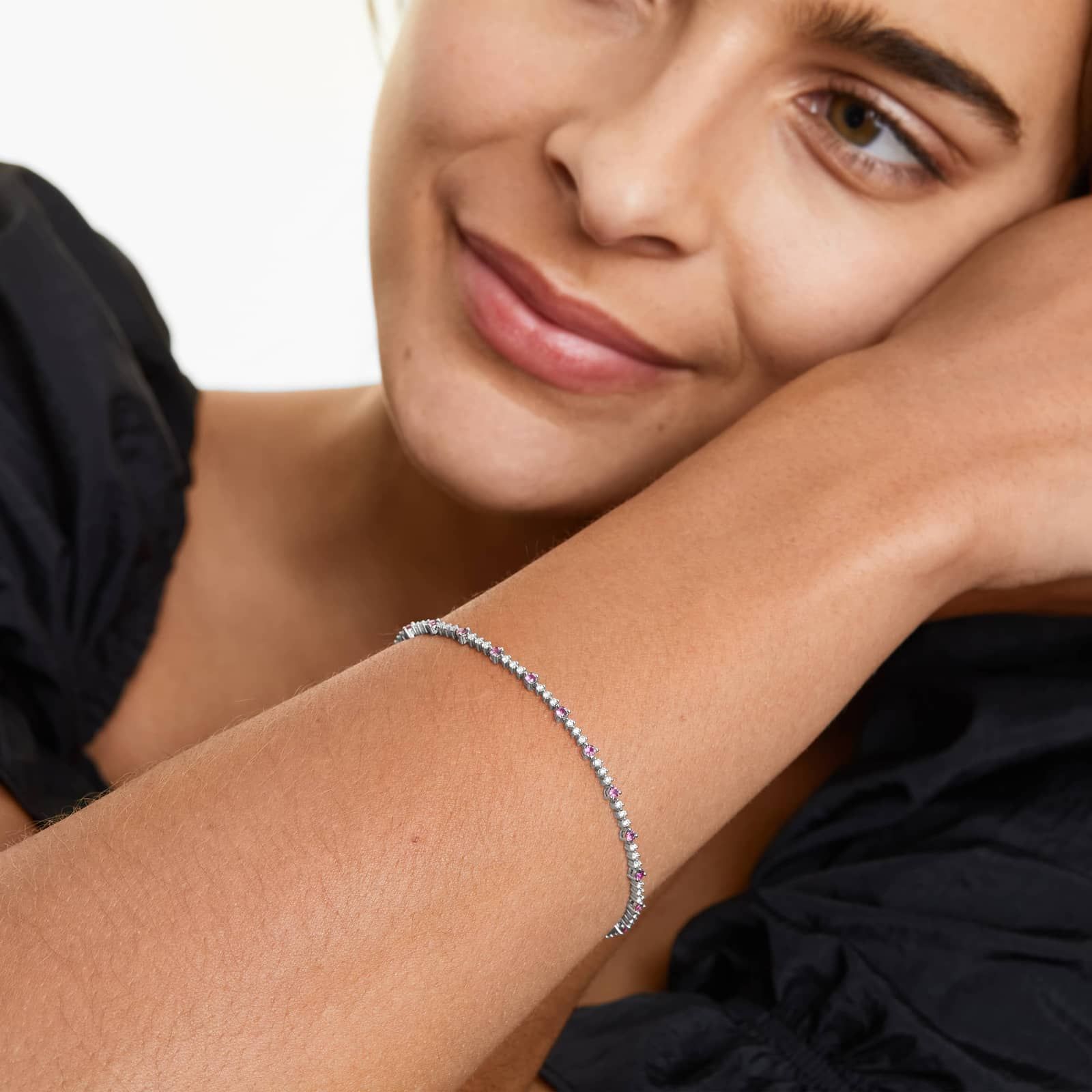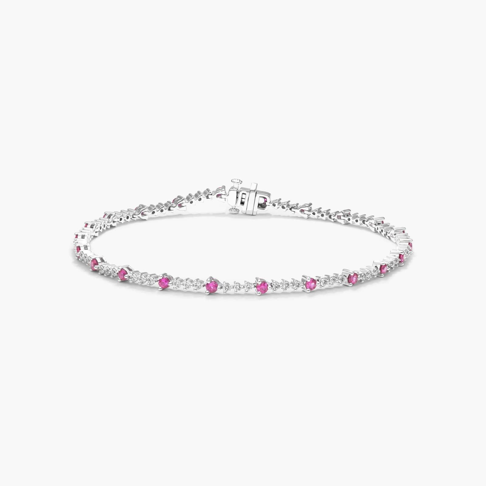Perpetual Diamond And Ruby Tennis Bracelet In 14K White Gold