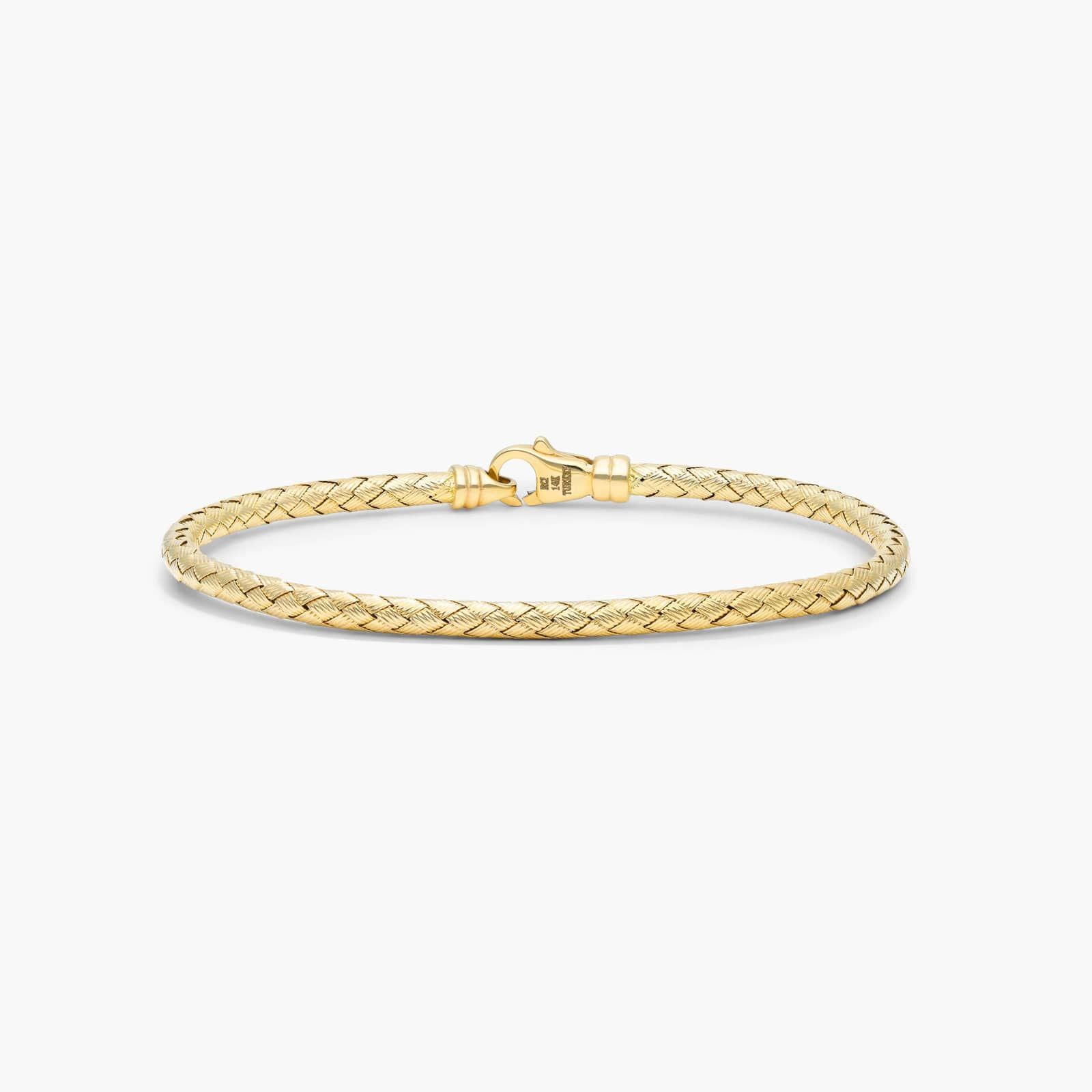 A classic bracelet made of woven 14K yellow gold. This beautiful bracelet secures with a lobster clasp.