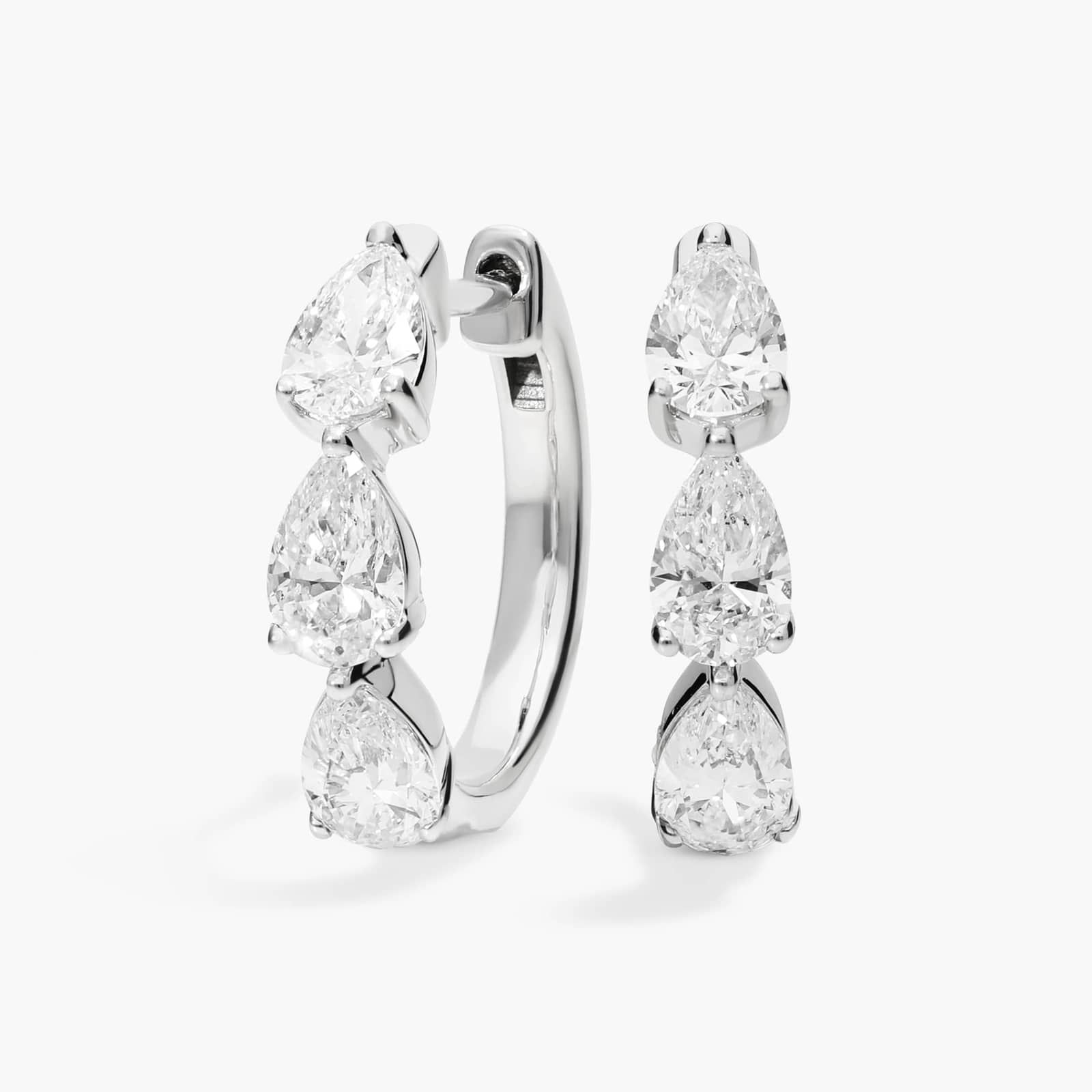 Pear shaped lab-grown diamonds and 14k white gold design make these hoops a smart choice. They add instant brilliance to any outfit.
