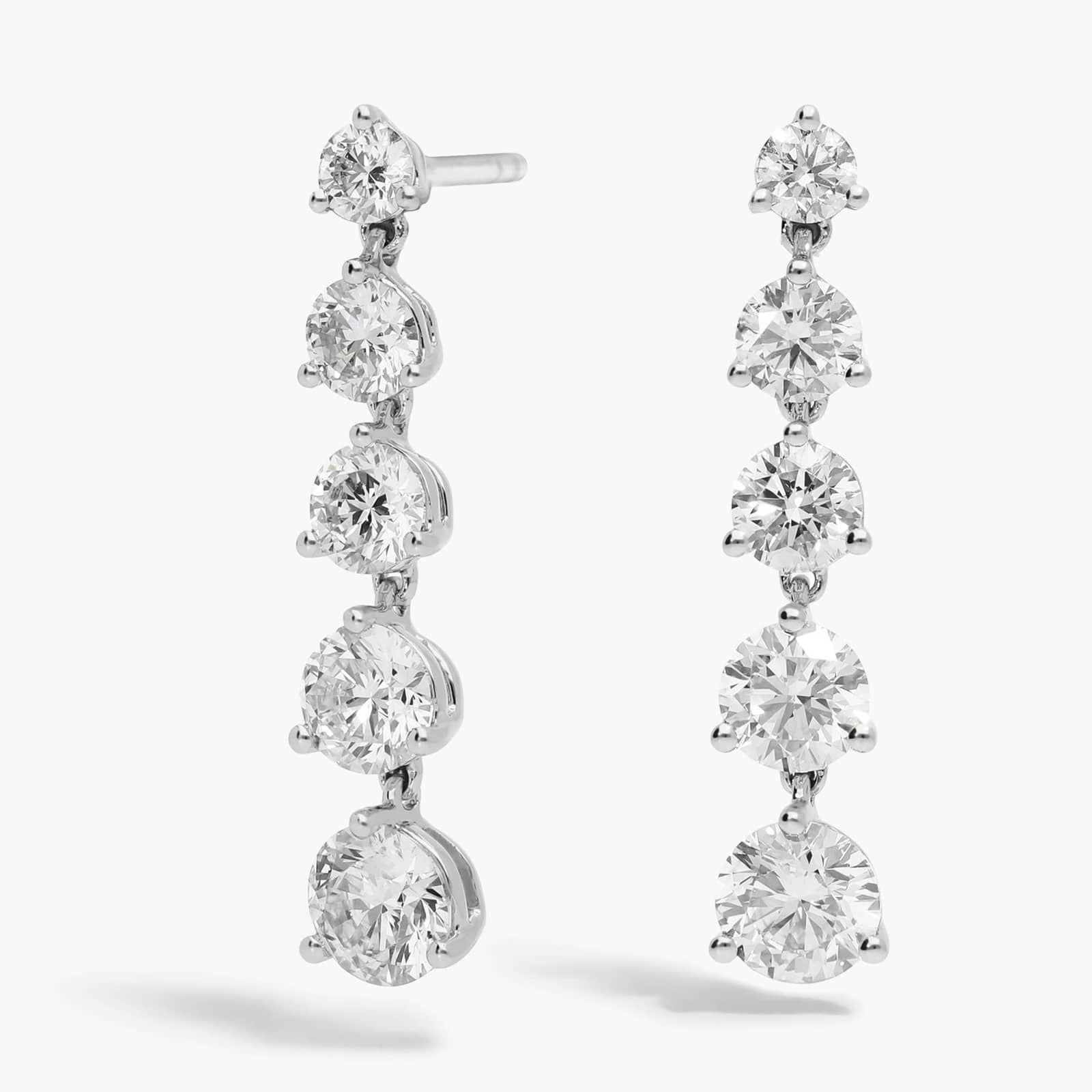 5 Diamond Drop Earrings with 2 CTW Round Cut Lab-Grown Diamonds in 14K White Gold