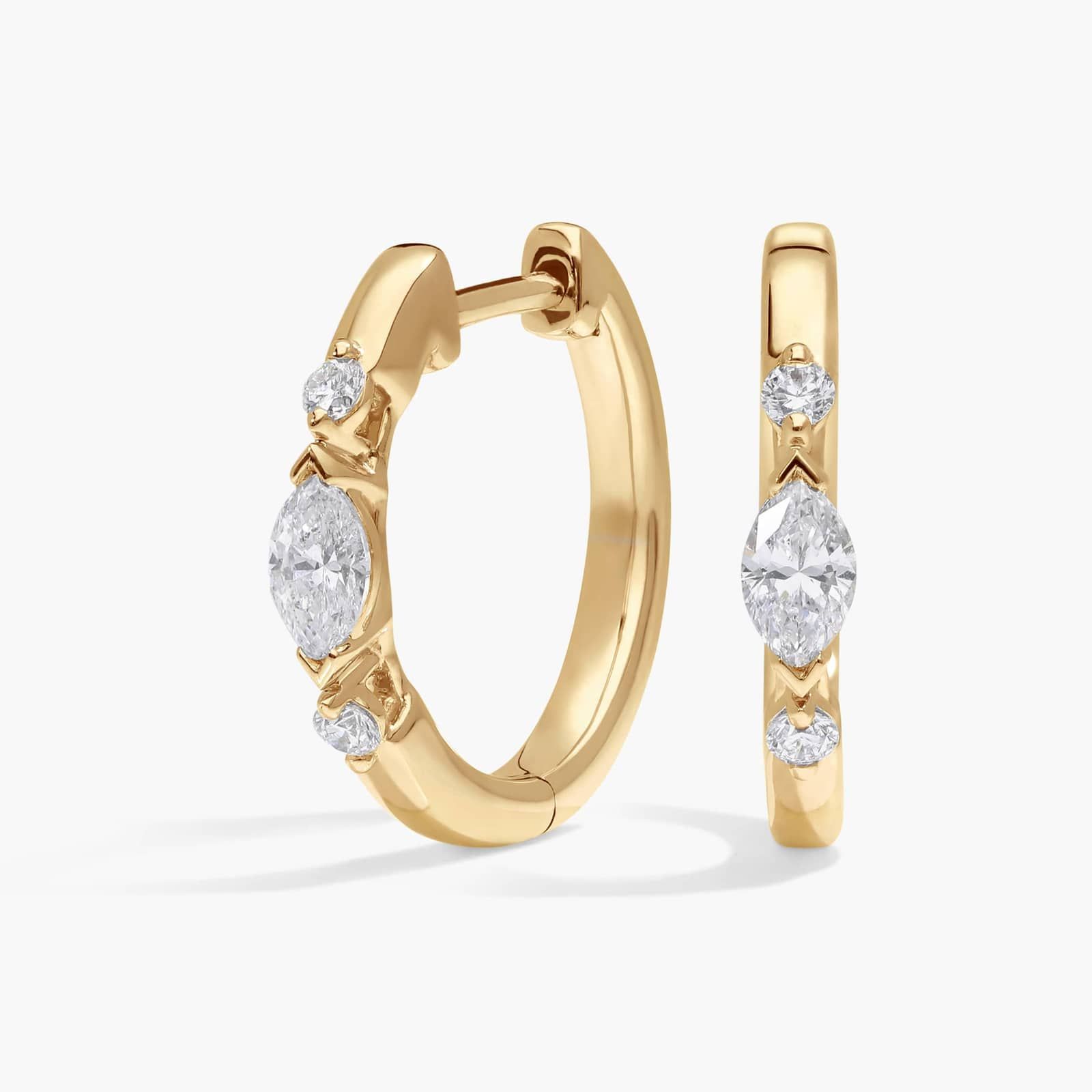 These marquise and round cut lab-grown diamond hoop earrings are always a stylish choice. With 14k yellow gold design, they add the perfect shine to any outfit. Add them to your own collection or give them as a brilliant gift.