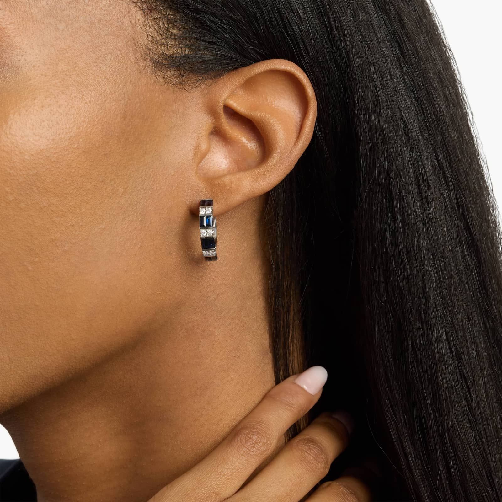 These trendy and chic hoop earrings with alternating sapphires and diamonds have just the perfect amount of sparkle and color for any jewelry box.