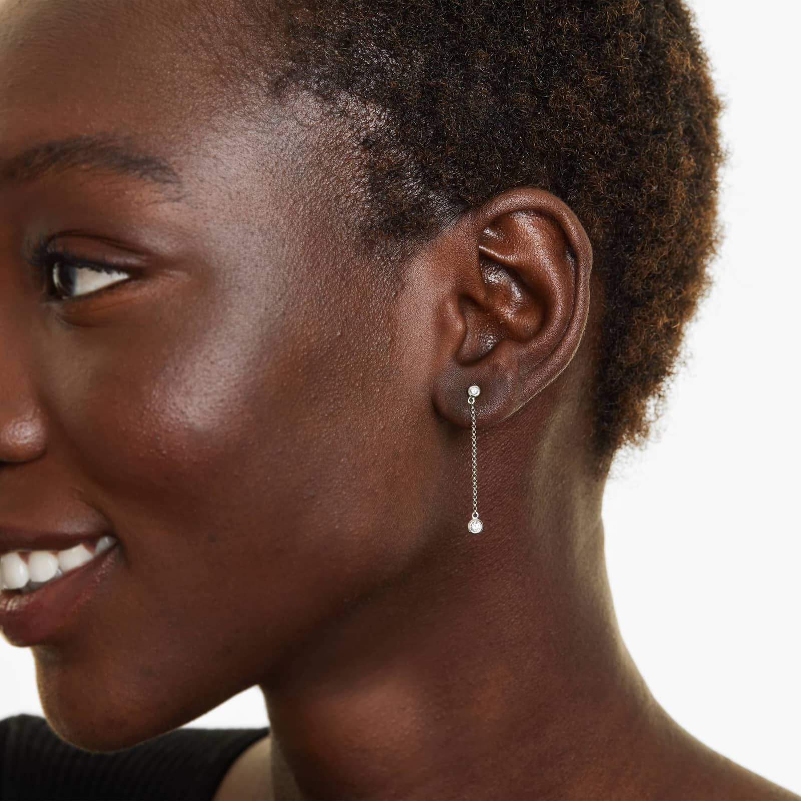 Make your sparkle move with these gold bezel set chain earrings. For someone who is looking for earrings that can go with the flow, this pair is the perfect way to bring diamonds into the light.