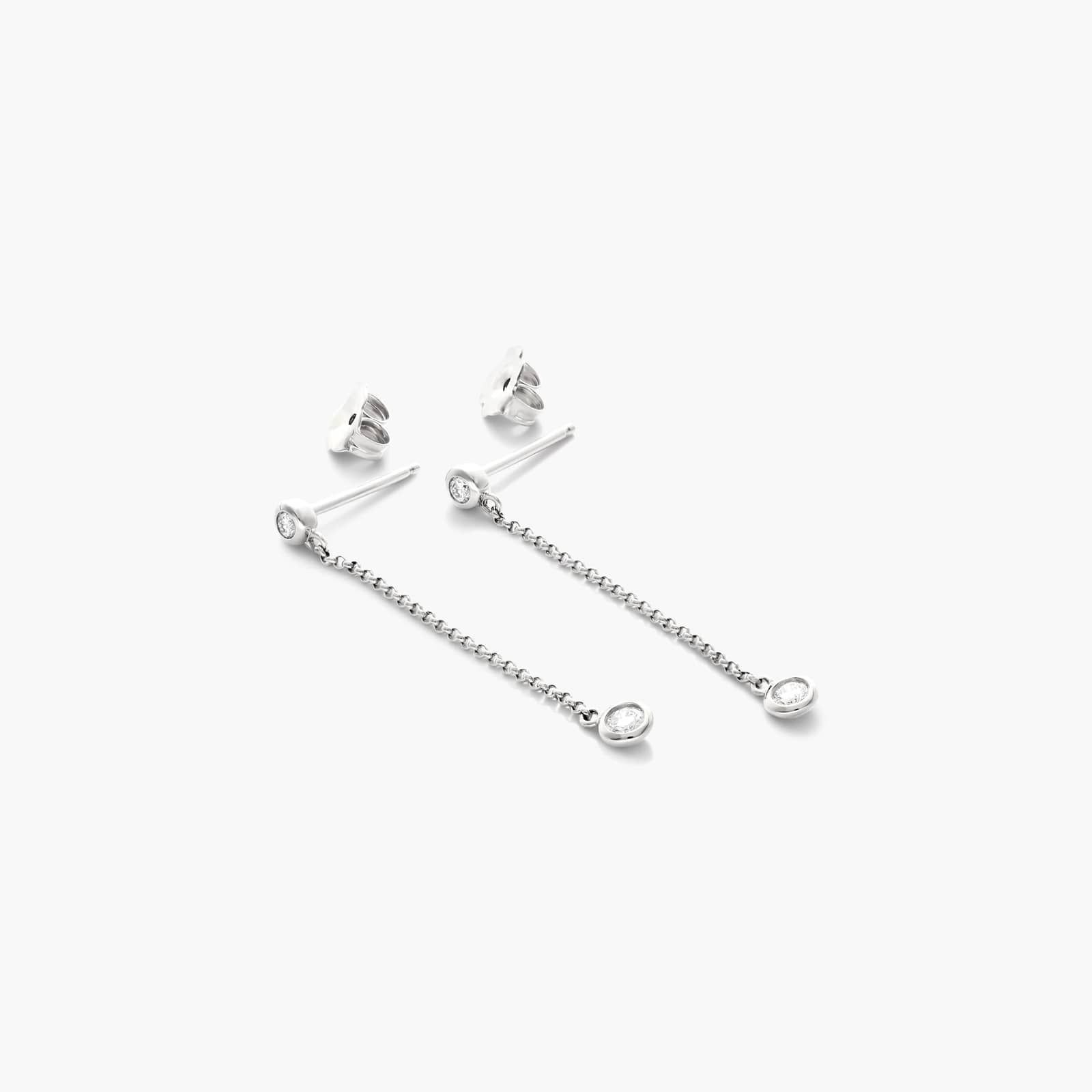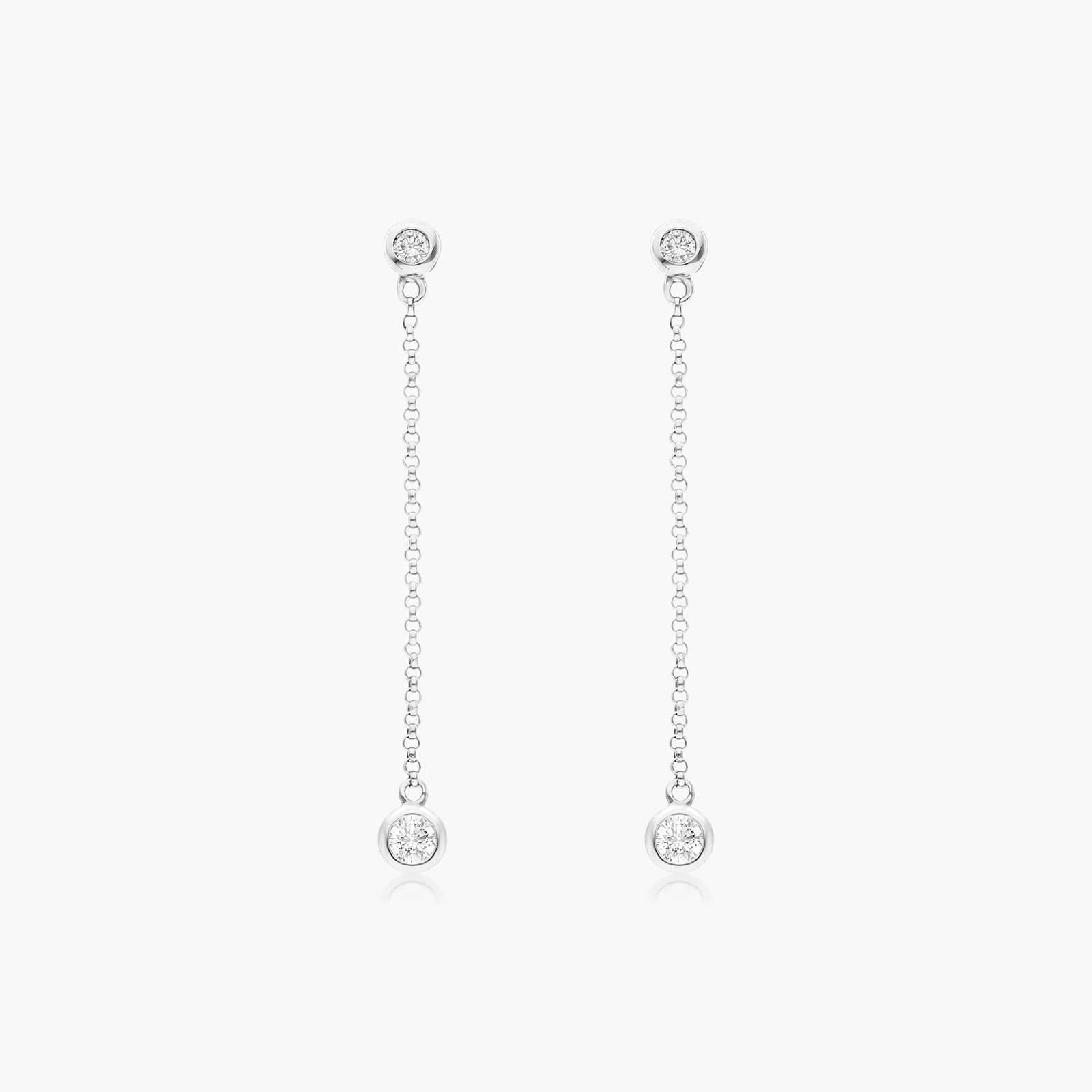 Bezel Set Chain Diamond Drop Earrings In 14K White Gold