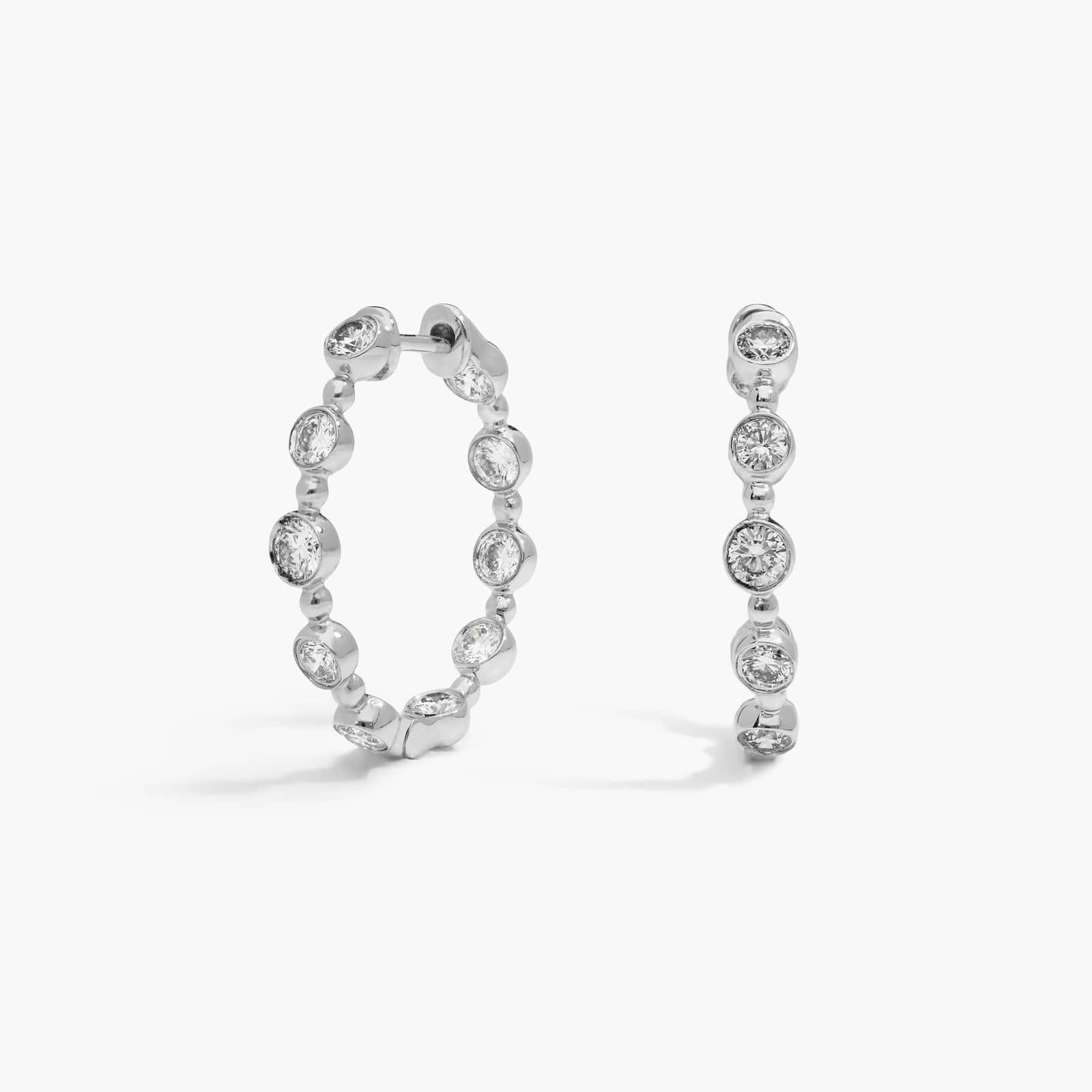 Bezel Set Diamond Hoop Earrings with 1 CTW Round Cut Lab-Grown Diamonds in 14K White Gold