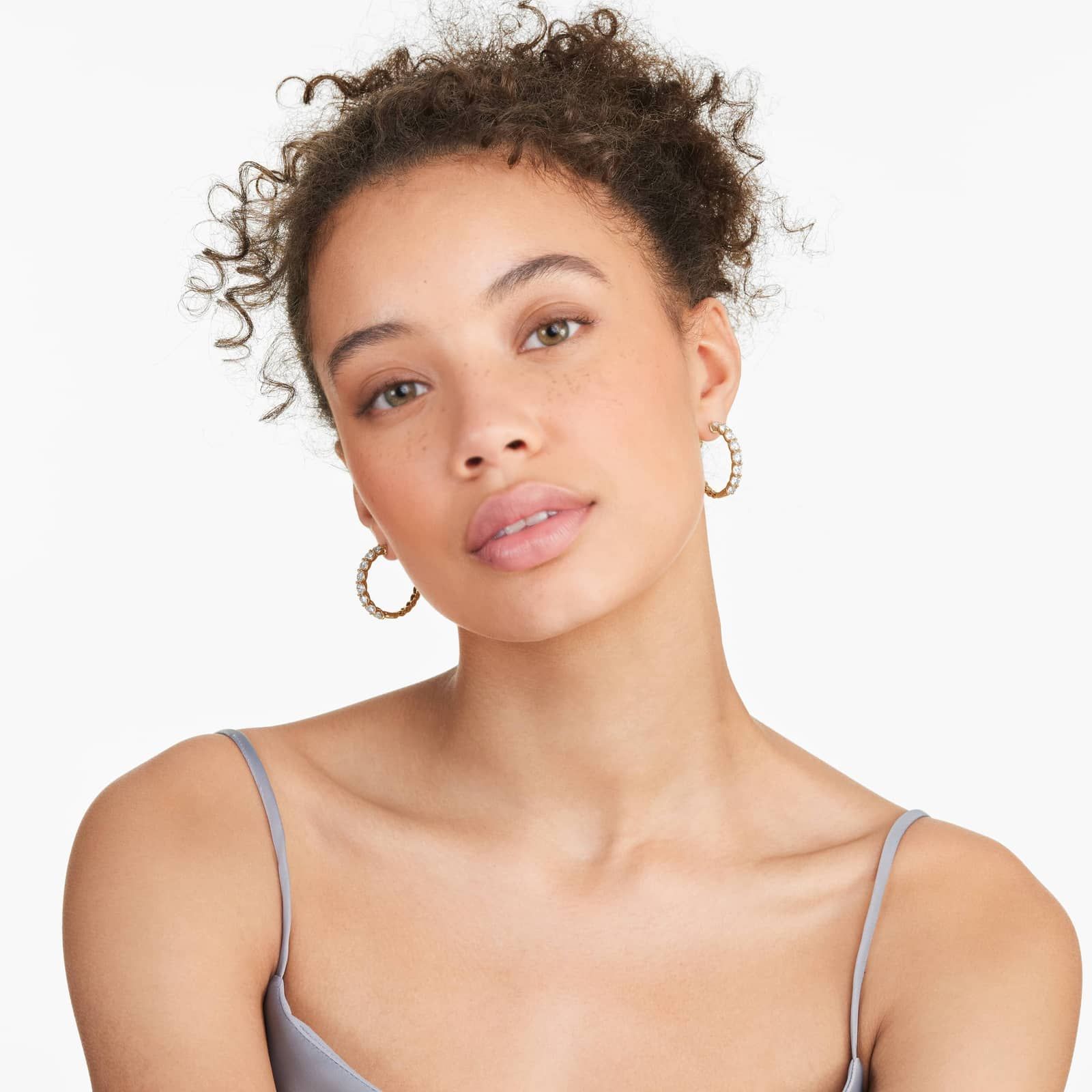 These head turning diamond hoop earrings are nothing but extraordinary. Round diamonds in trellis settings lead the way and embellish the frontal side of the hoop while the back is adorned with a striking and intricate braid design. These exquisitely crafted hoop earrings feature a hinge mechanism and a snap back to secure the earrings closed.