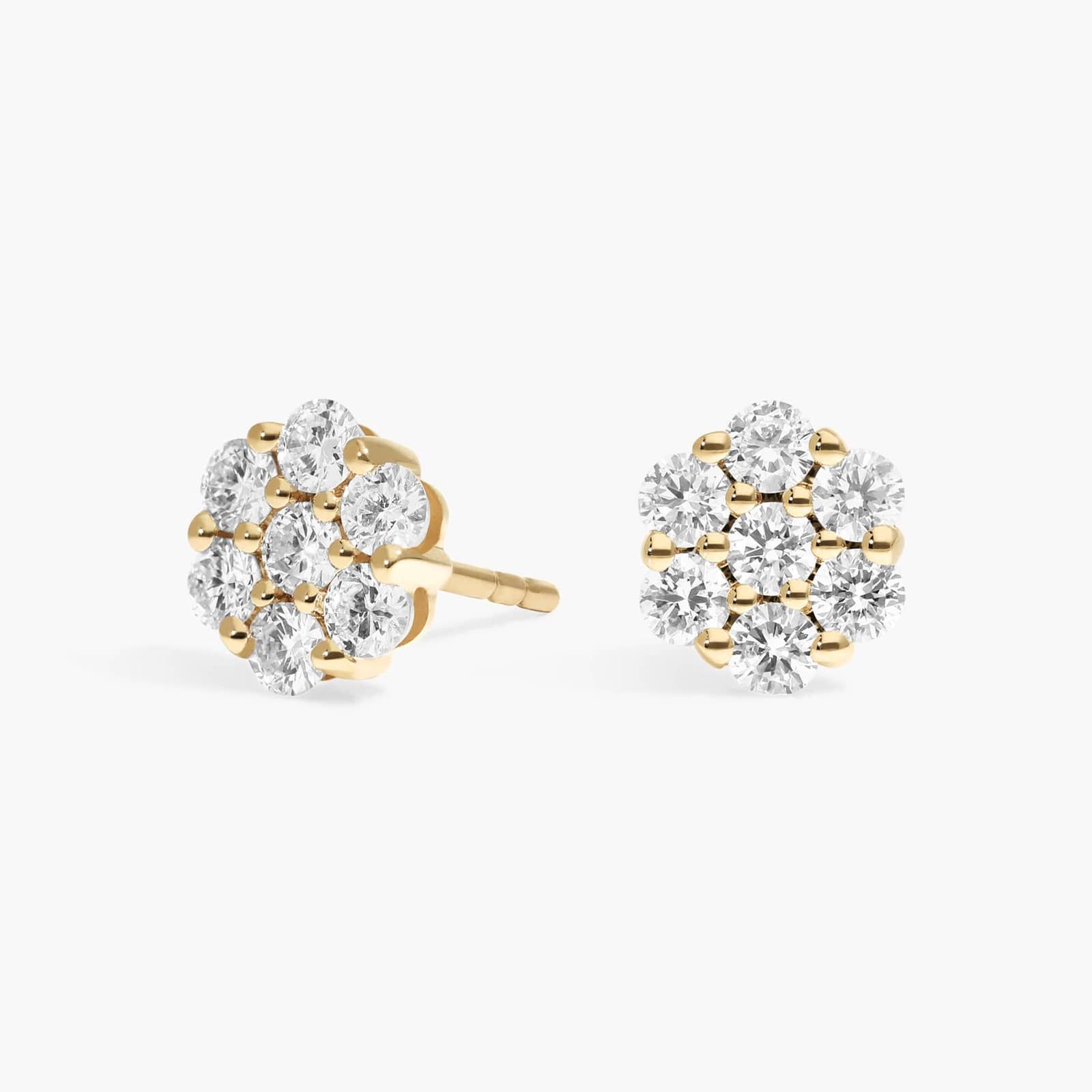 Cluster Diamond Stud Flower Earrings with 0.75 CTW Round Cut Lab-Grown Diamonds in 14K Yellow Gold