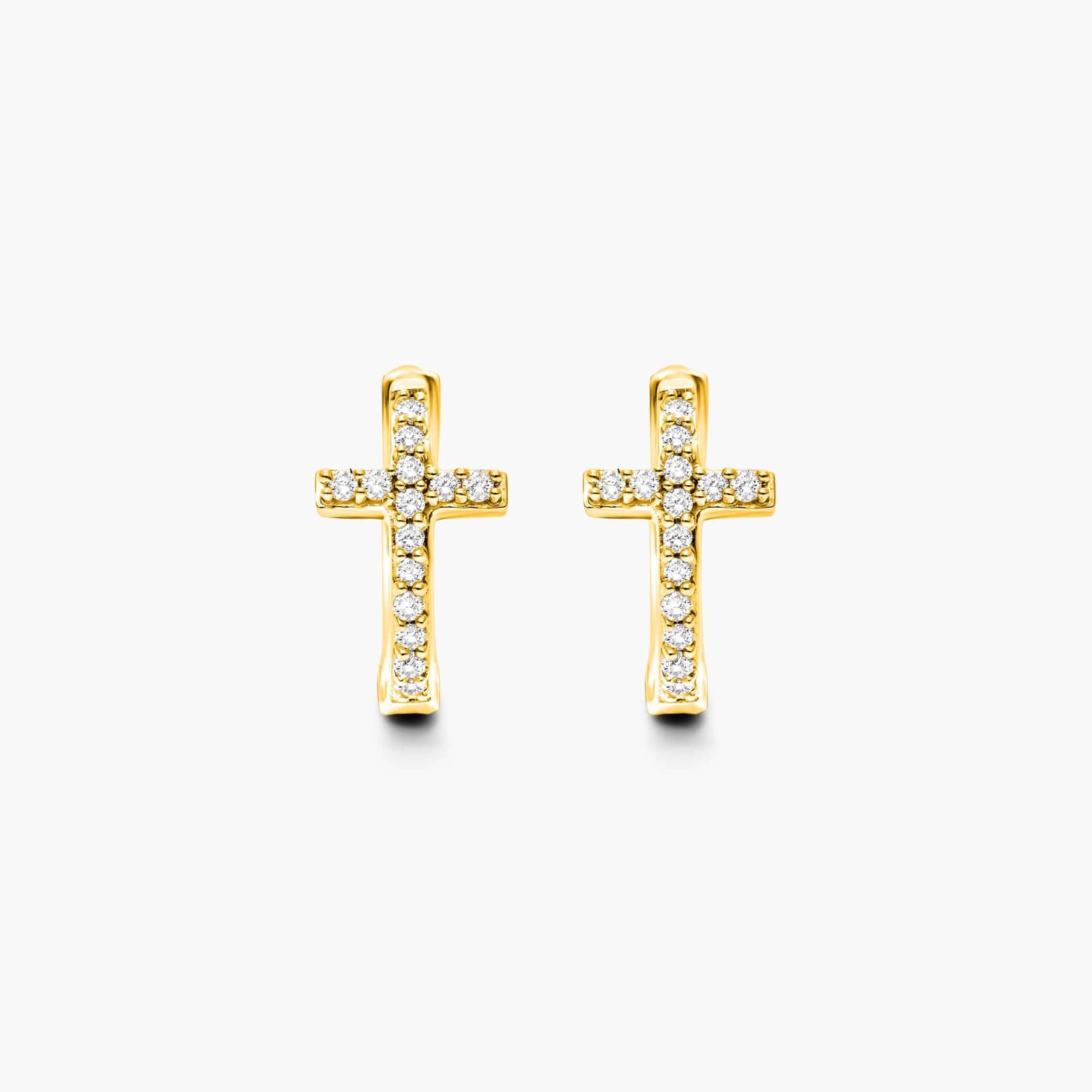 Cross Diamond Huggie Hoop Earrings In 14K Yellow Gold By Brevani