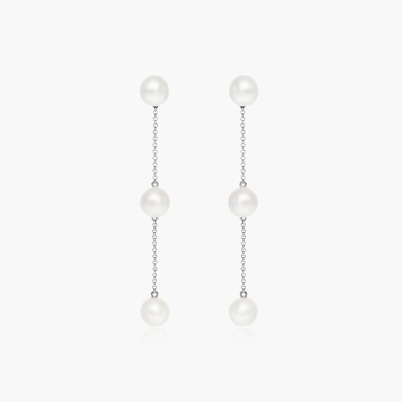 Cultured Freshwater Pearl Station Earrings In 14K White Gold By James Allen