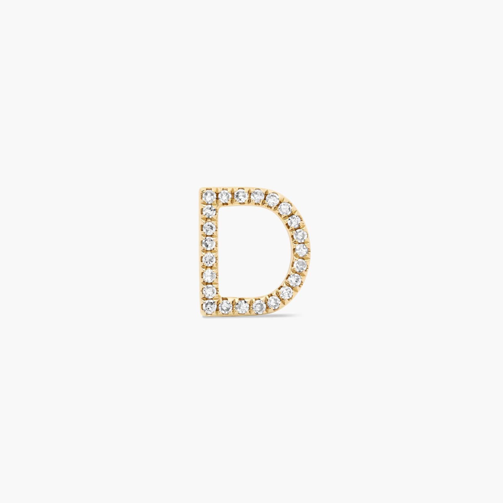 D Initial Pavé Diamond Stud Earring In 14K Yellow Gold