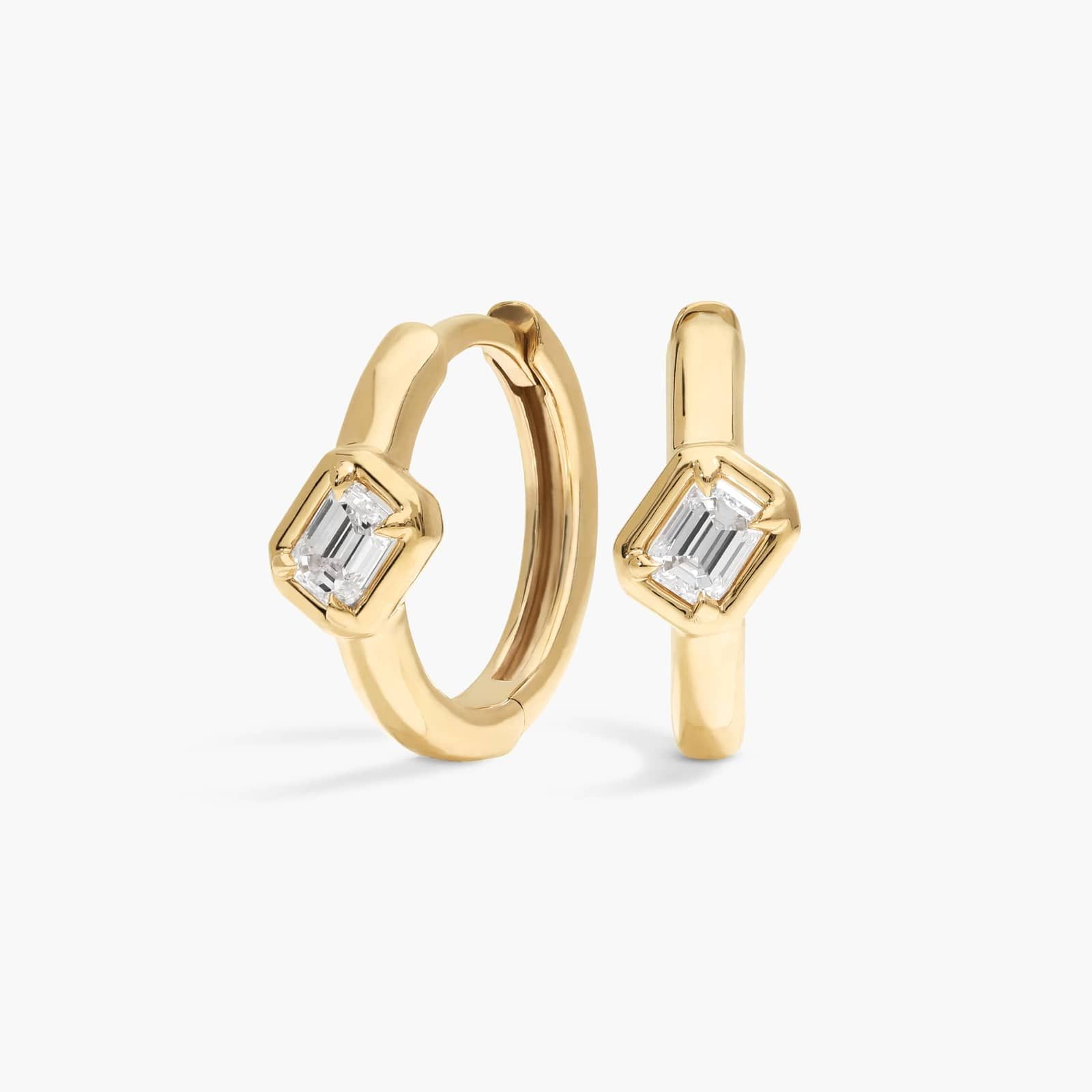 Diamond Hoop Earrings with 0.2 CTW Emerald Cut Lab-Grown Diamonds in 14K Yellow Gold Bezel Setting