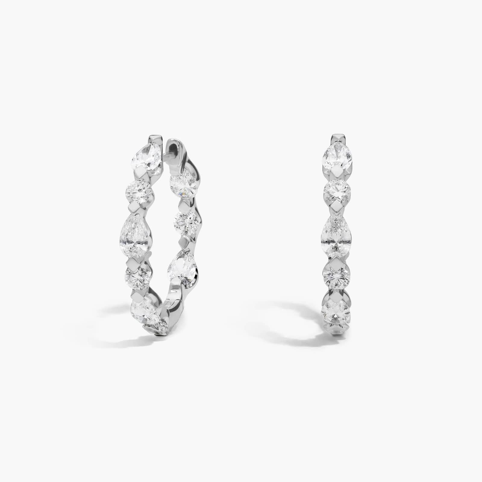 Diamond Hoop Earrings with 2.5 CTW Pear and Round Cut Lab-Grown Diamonds in 14K White Gold