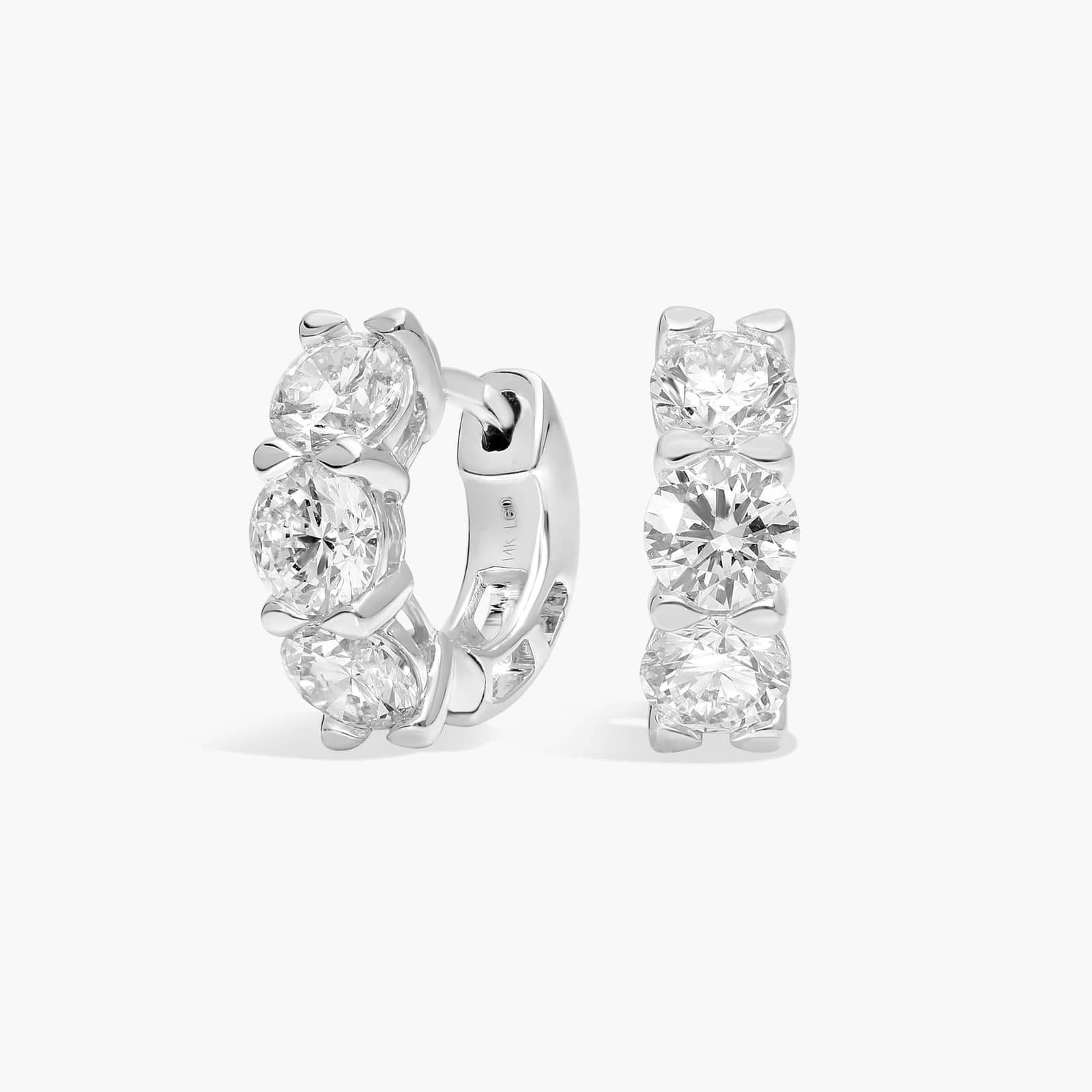 Diamond Huggie Earrings with 3 CTW Round Cut Lab-Grown Diamonds in 14K White Gold