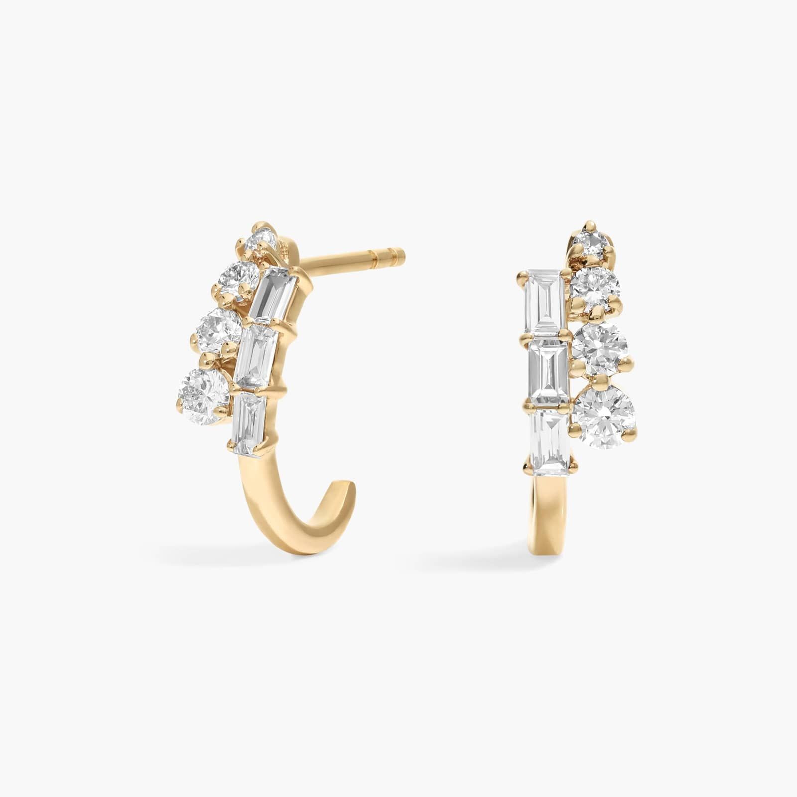 These partial J hoop earrings bring an updated look to the classic hoop design. With mixed shape lab-grown diamonds and 14k yellow gold details, they're easy to style. Add them to your own collection or give them as a brilliant gift.