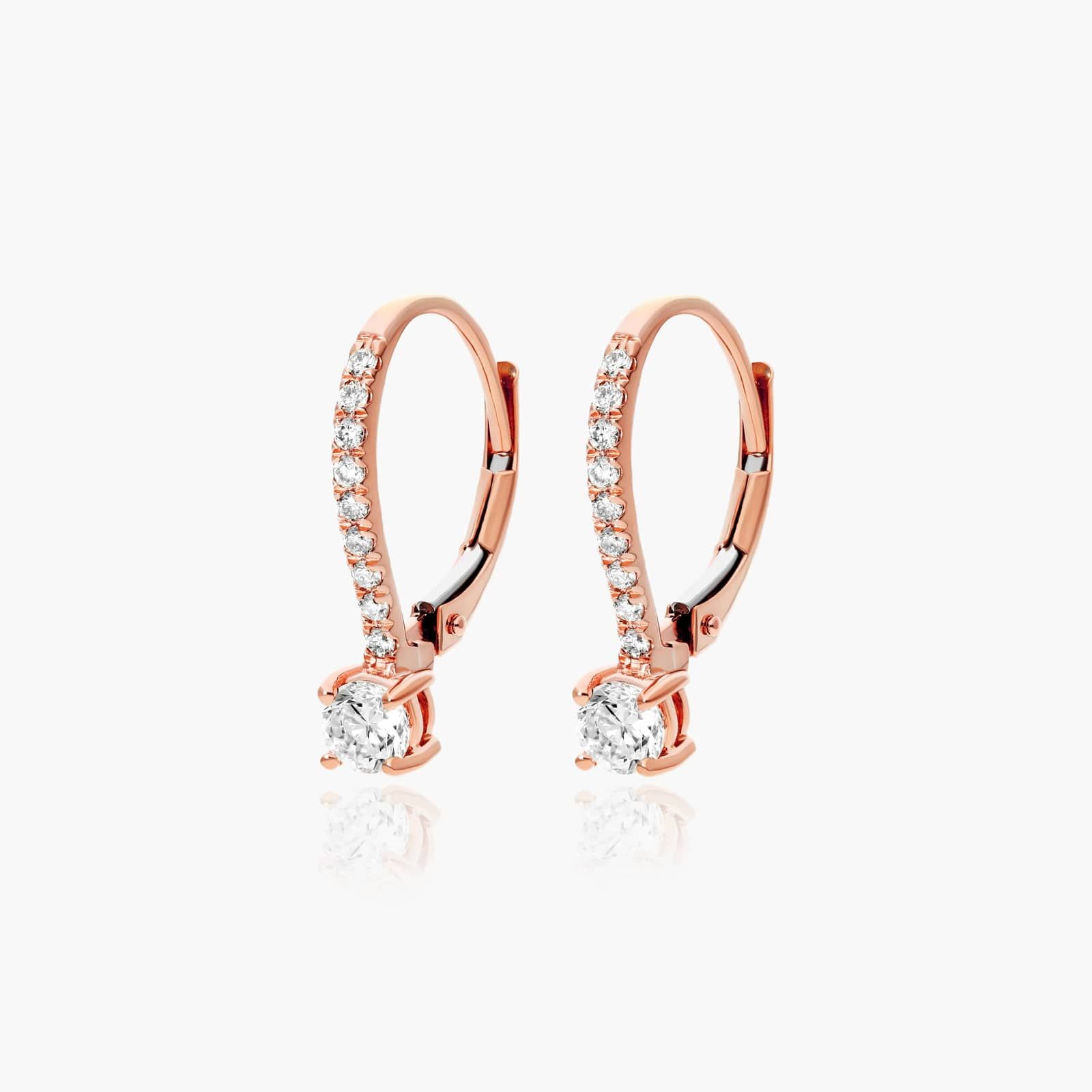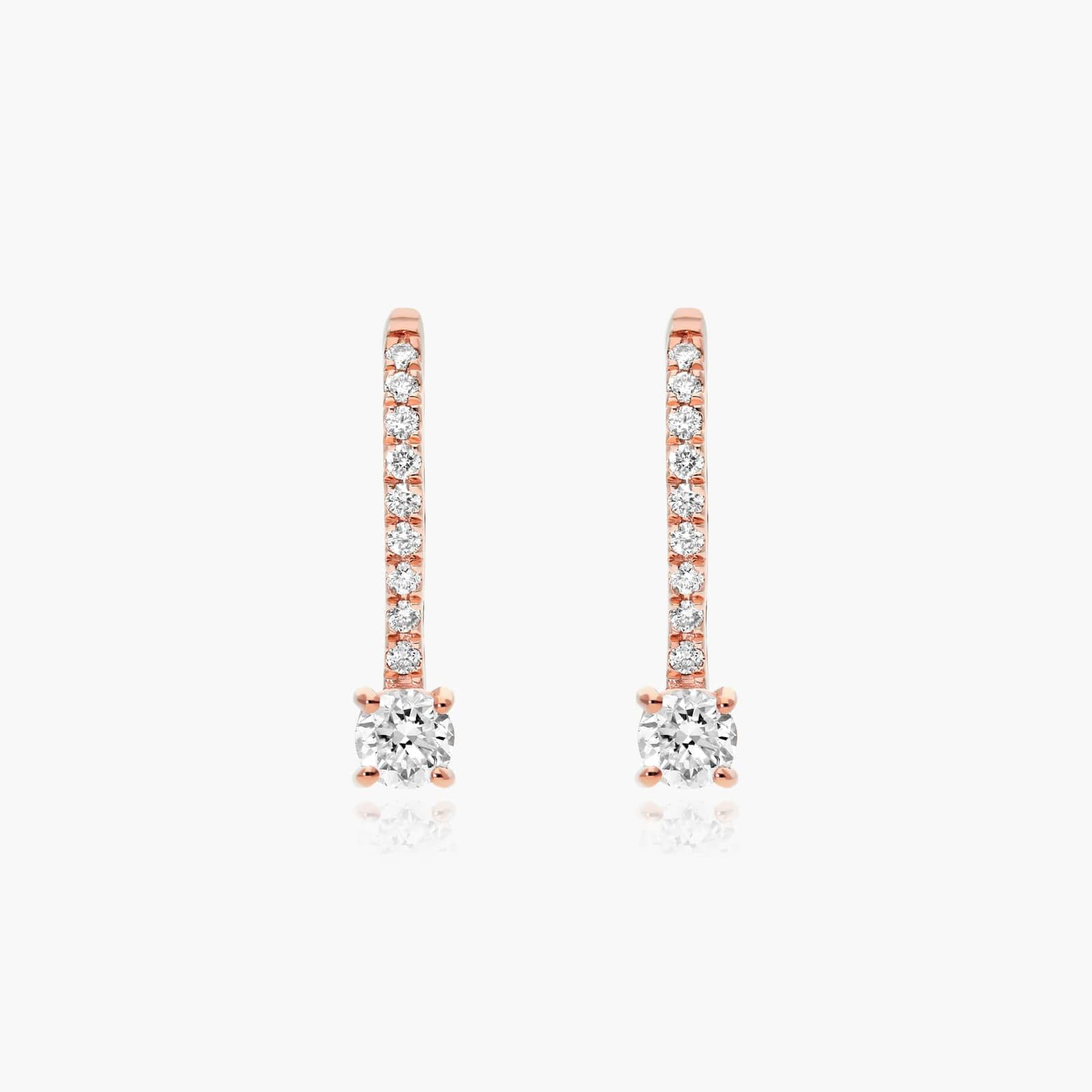 Drop Hoop Earrings With Round Diamonds In 14K Rose Gold