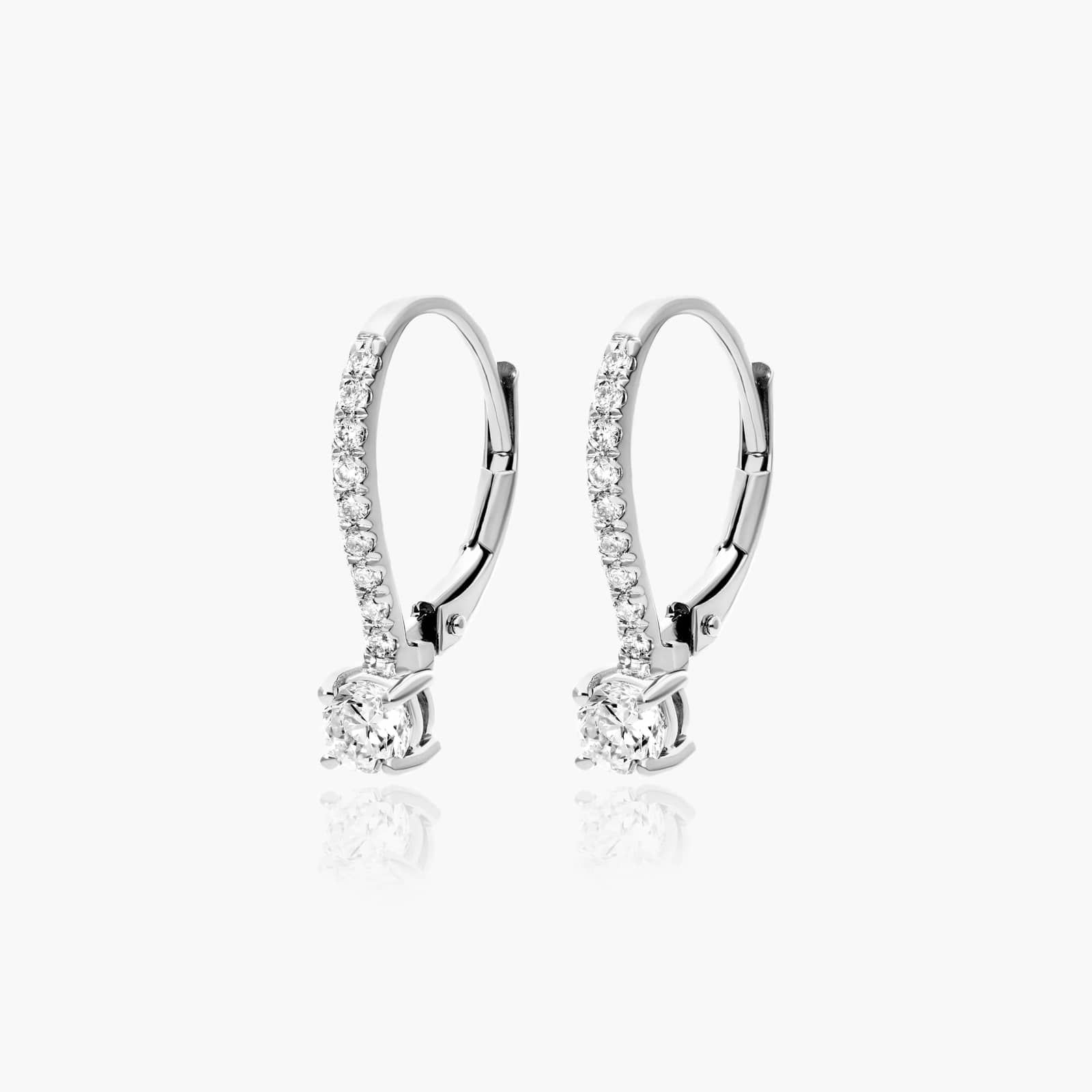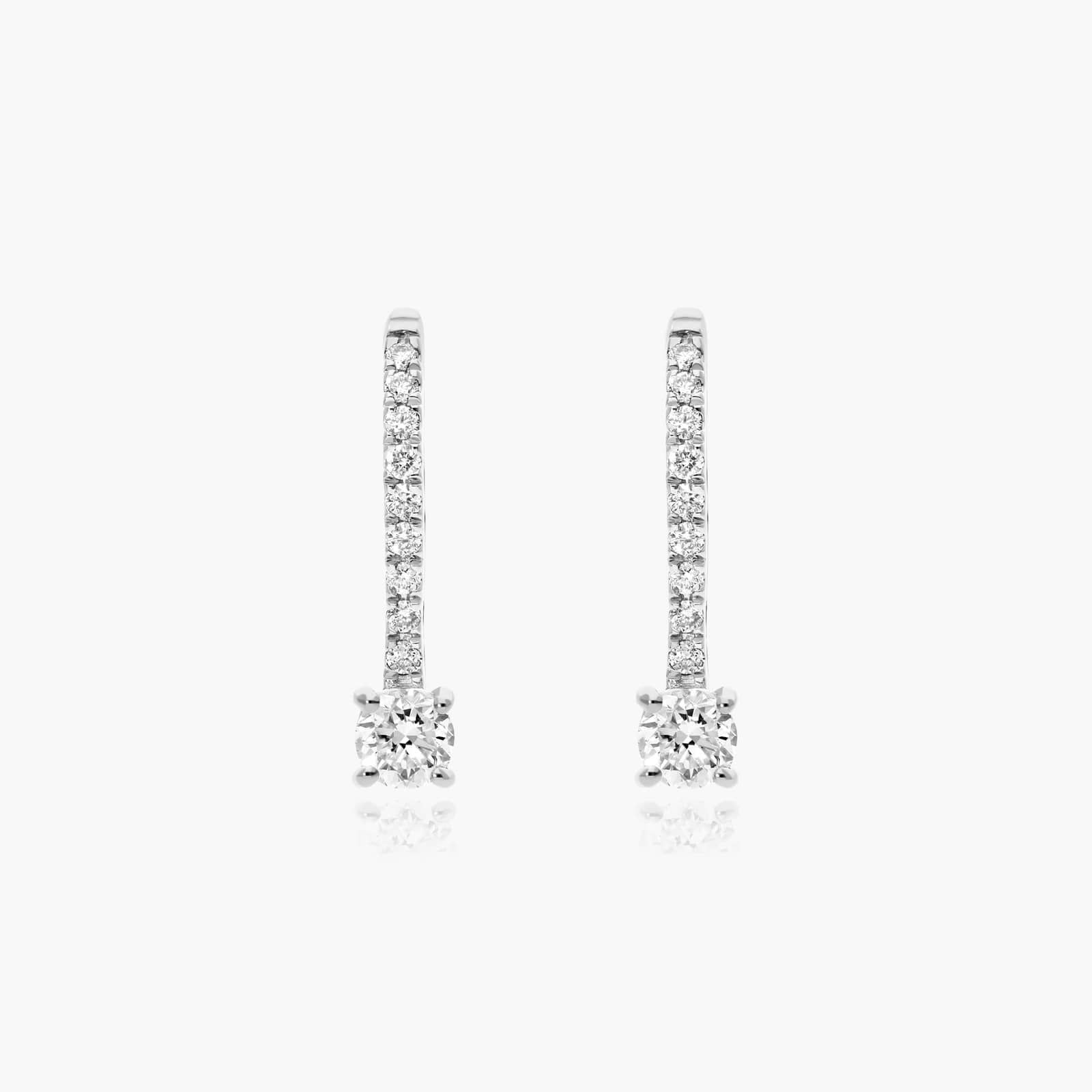 Drop Hoop Earrings With Round Diamonds In 14K White Gold