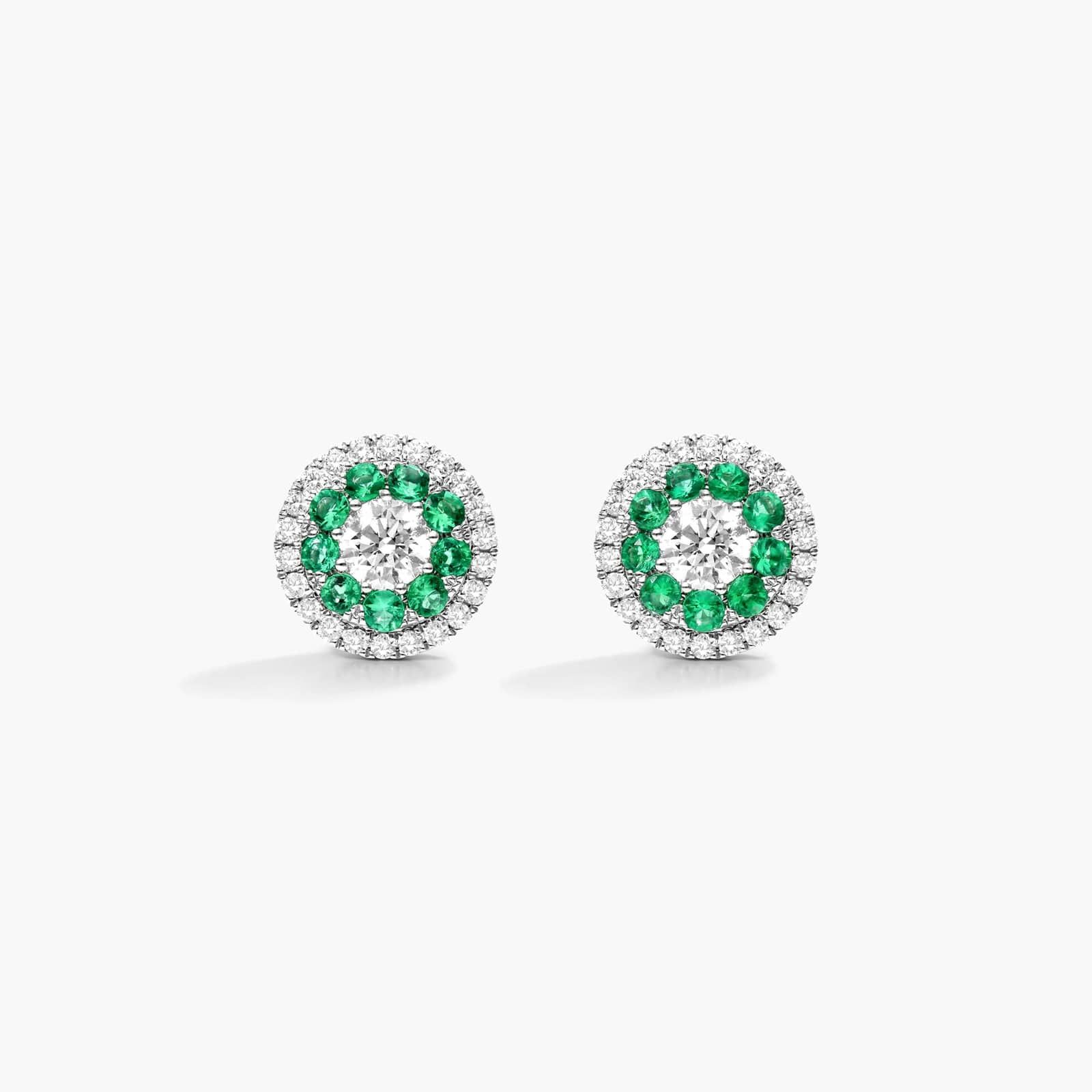 Emerald And Diamond Double Halo Stud Earrings In 14K White Gold By James Allen