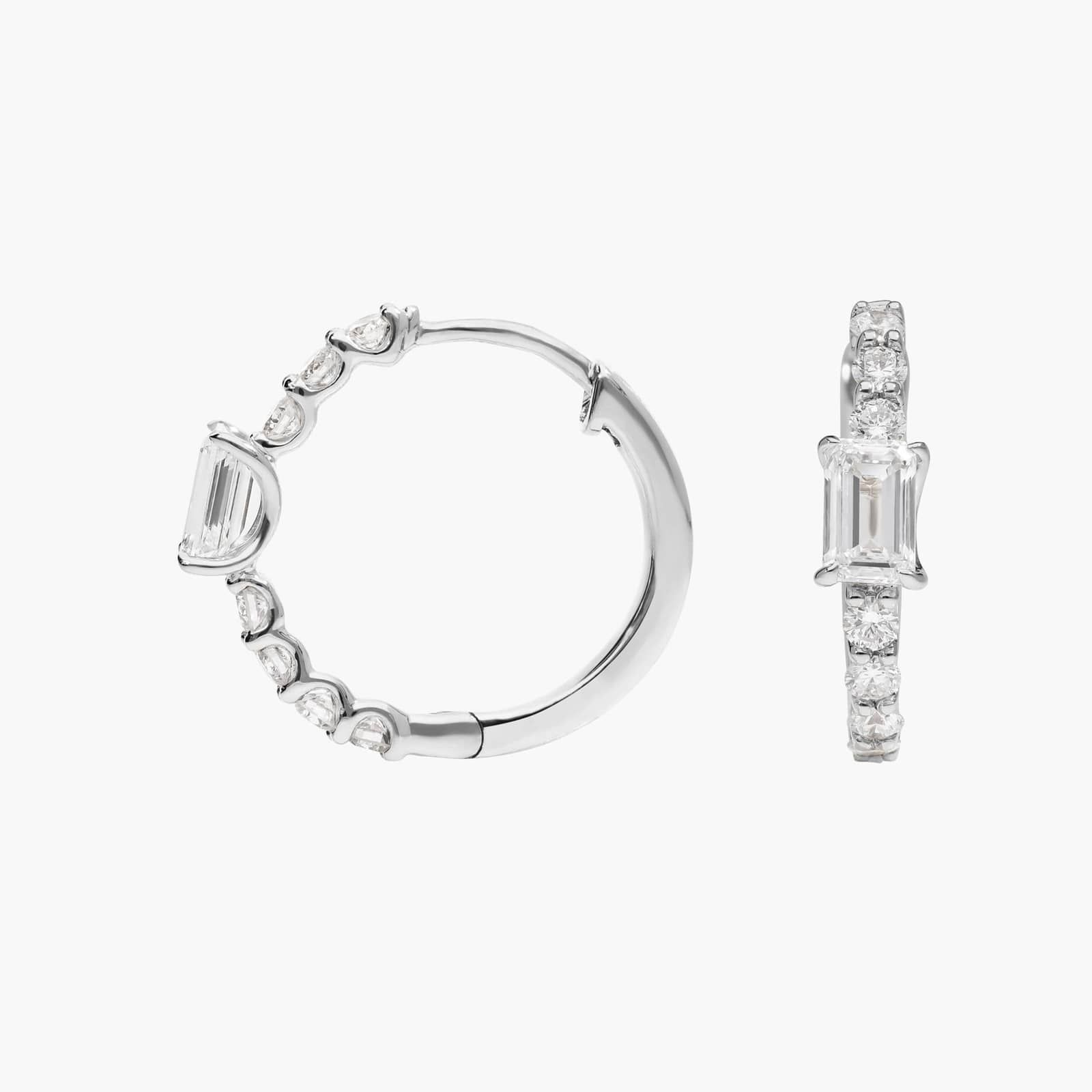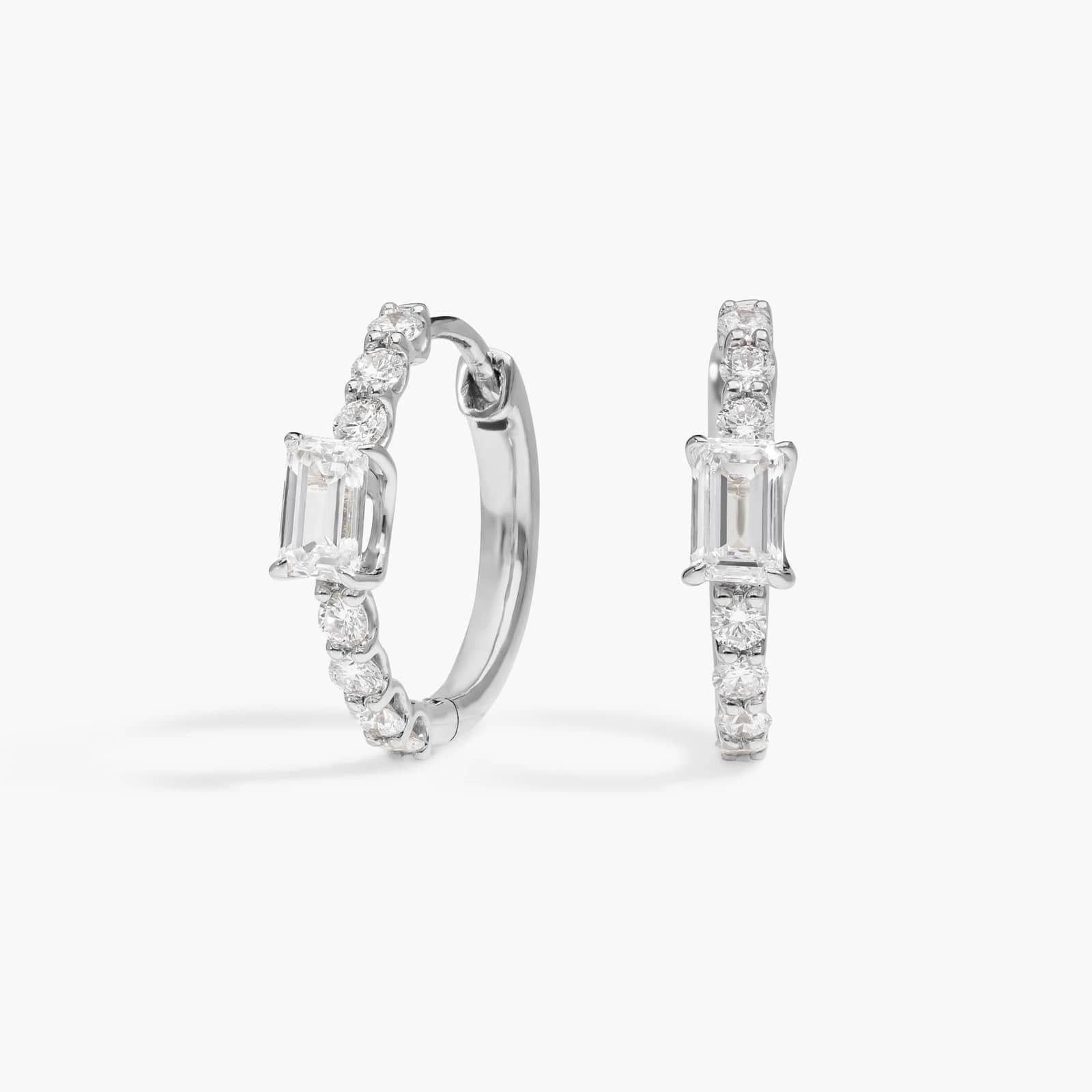 With round and emerald cut lab-grown diamonds, these huggie earrings are easy to style. Wear them on their own, stack them with additional earrings in matching 14k white gold or give them as a gift.