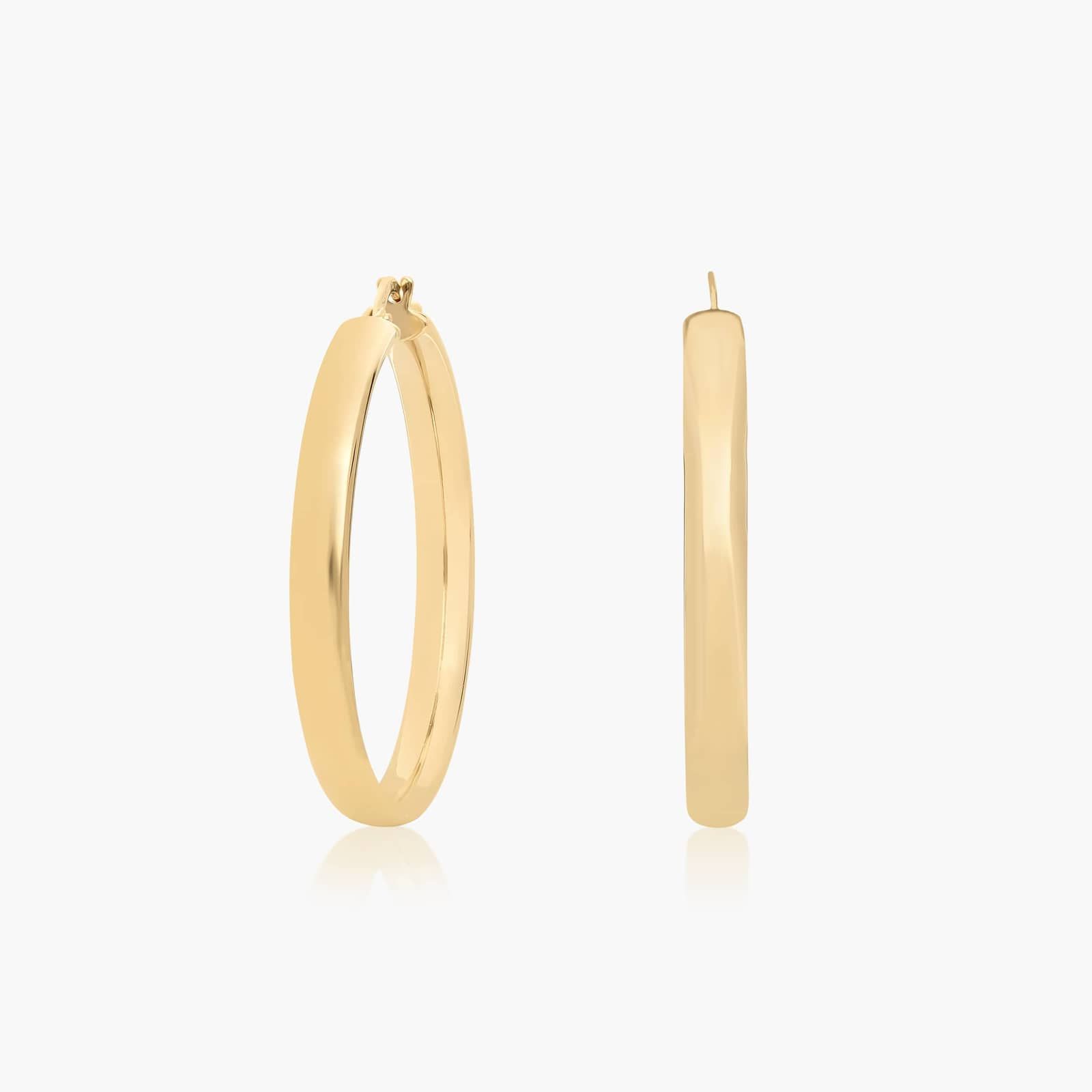 Love the traditional style a wedding band offers? Then these earrings are for you! Expertly crafted in 14K yellow gold with a beautiful finish polish, these earrings are classic, minimalist, and incredibly versatile. Wear them everywhere and always look good!