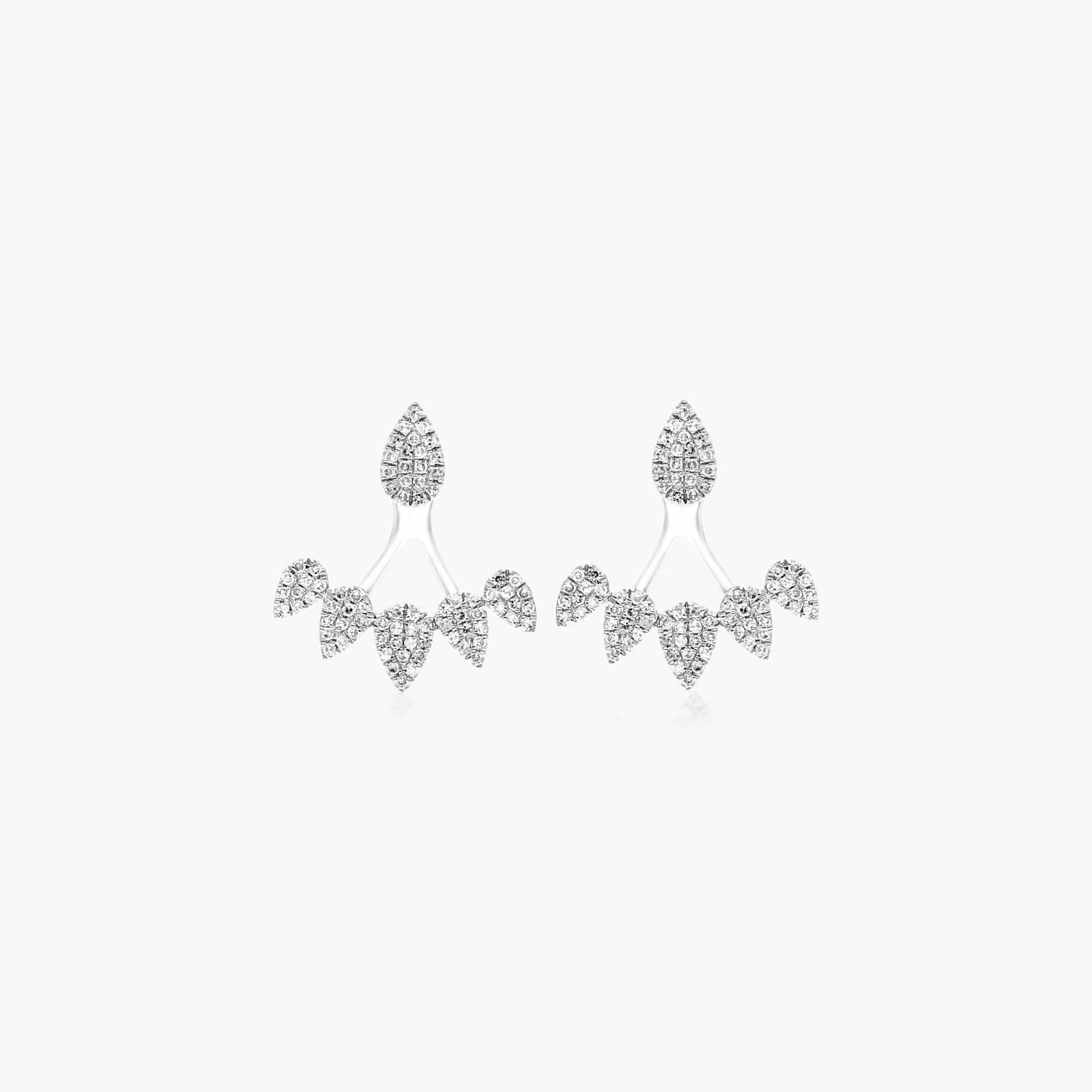 The perfect addition for the jewelry collector who has everything, these geometric diamond ear jackets make a statement. Featuring diamonds set in 14K white gold graduating pear shapes, these earrings are feminine, bold and fashion forward.