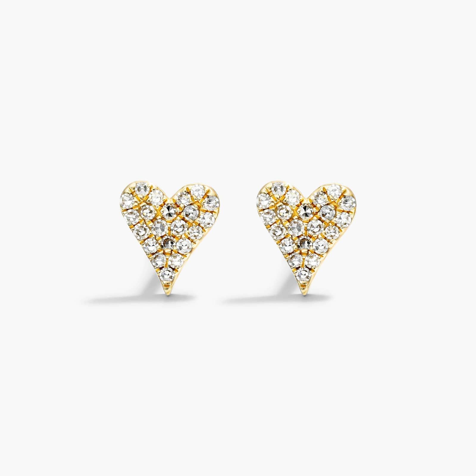 These diamond pavé heart studs are a contemporary take on a classic look. Set in 14K yellow gold, they perfect for everyday wear.