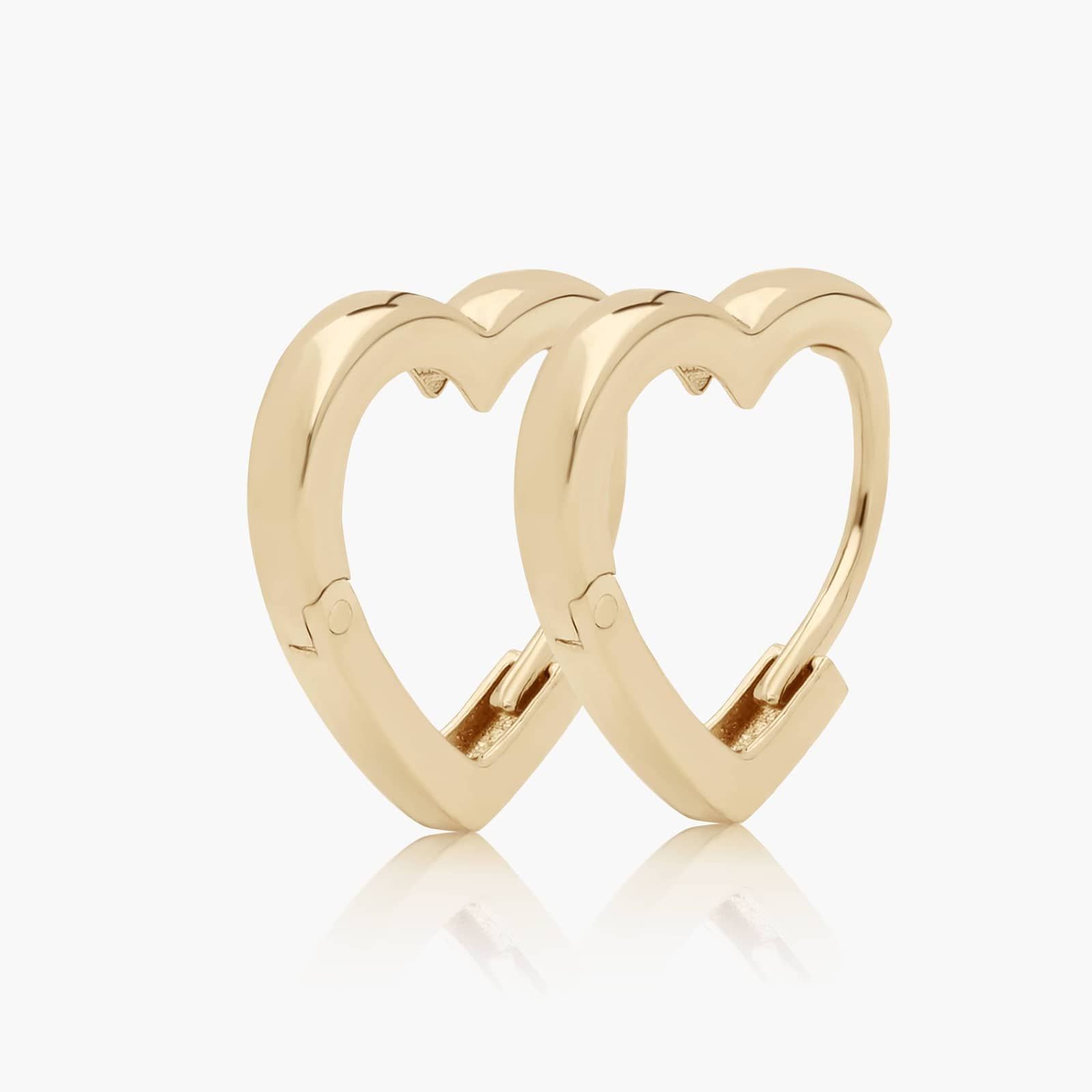 Heart Huggie Hoop Earrings In 14K Yellow Gold