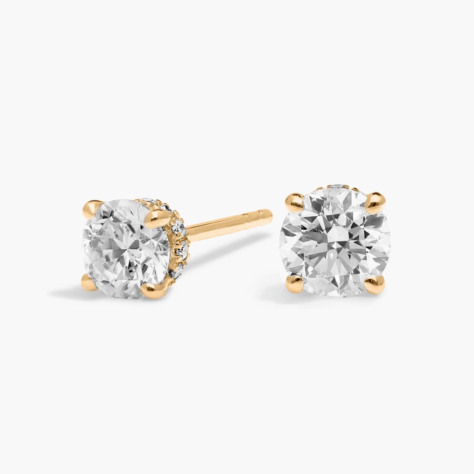 Hidden Halo Stud Earrings with 1 CTW Round Cut Diamonds in 14K Yellow Gold