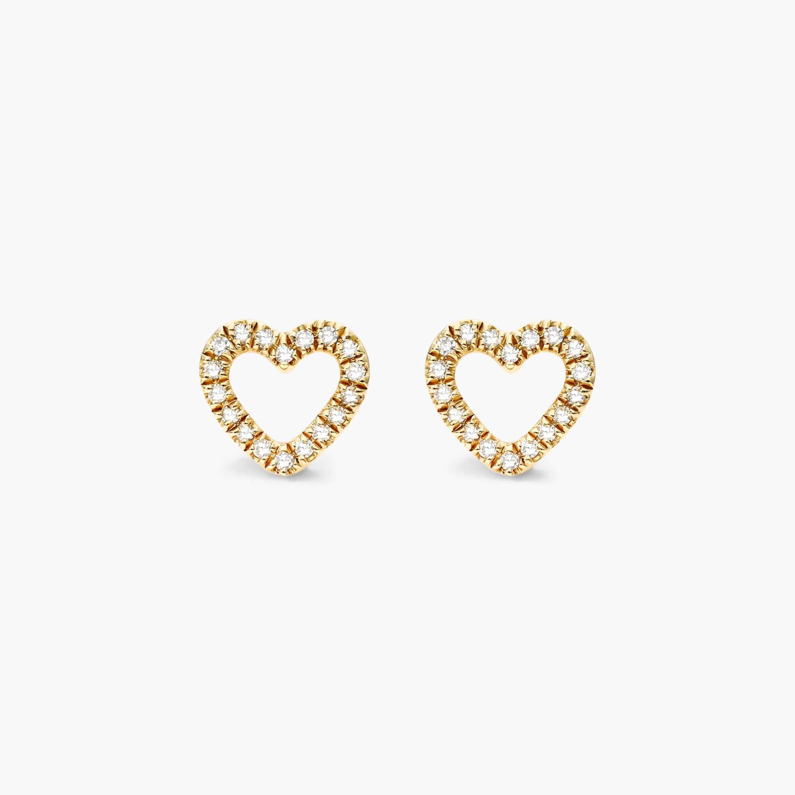 These open diamond heart studs are a contemporary take on a classic look. Set in 14K yellow gold, they perfect for everyday wear.