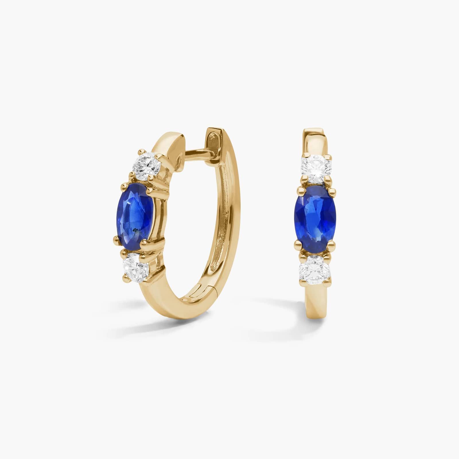 Oval Blue Sapphire and Diamond Hoop Earrings in 14K Yellow Gold