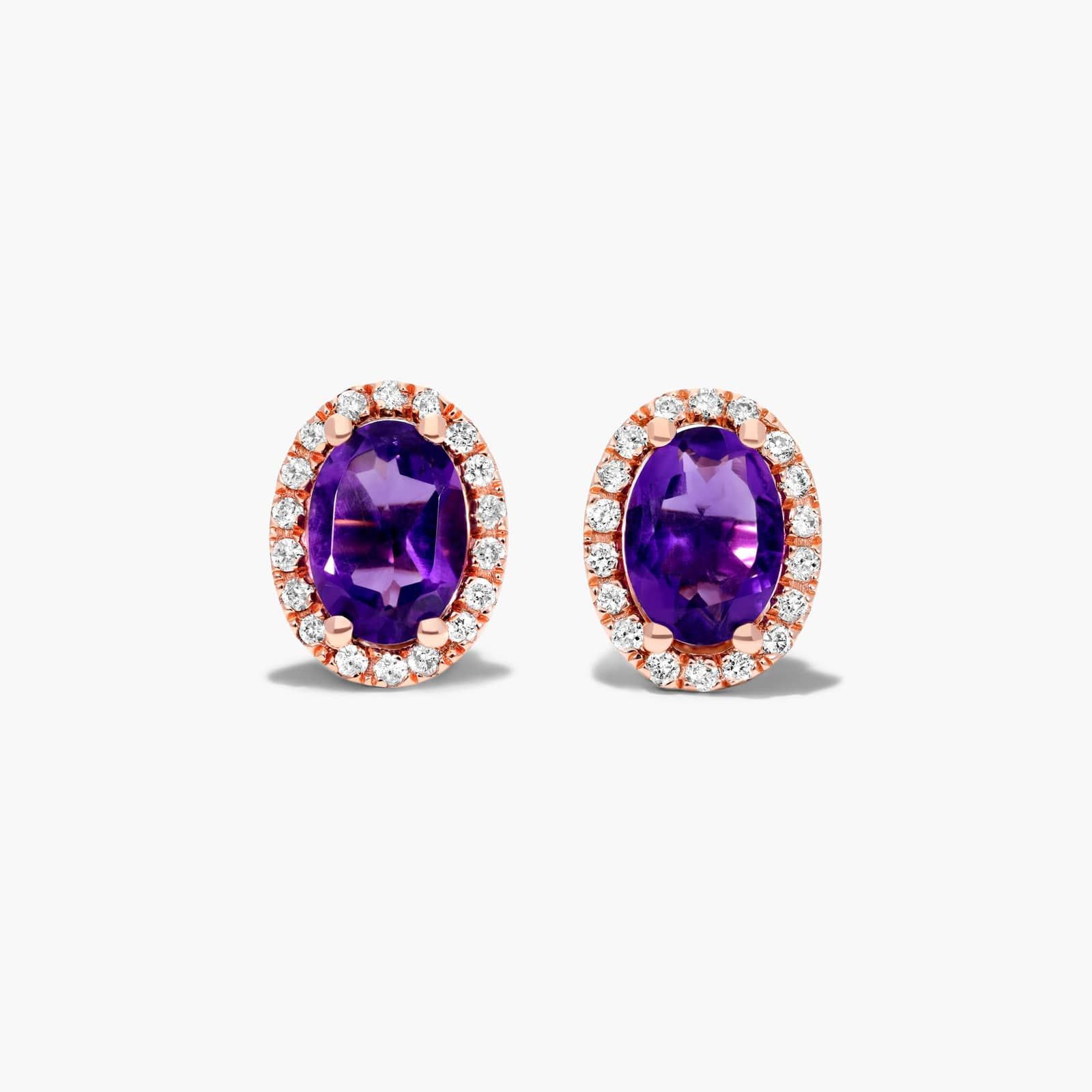 Oval Cut Amethyst And Diamond Halo Stud Earrings In 14K Rose Gold By James Allen
