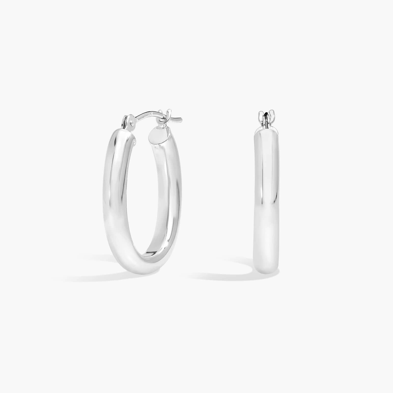 Oval Hoop Earrings (3x18mm) in 14K White Gold